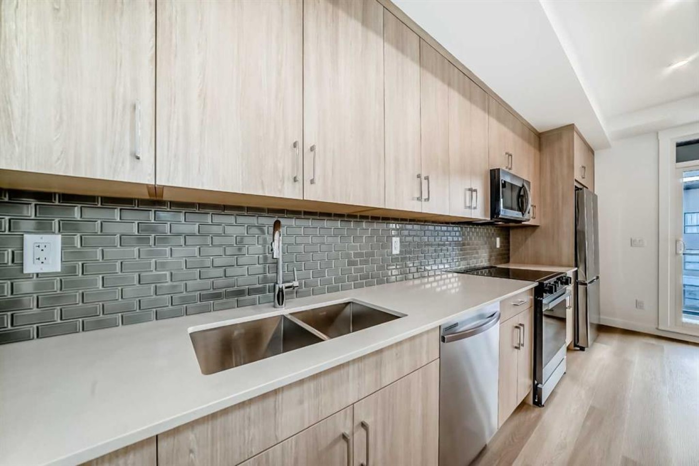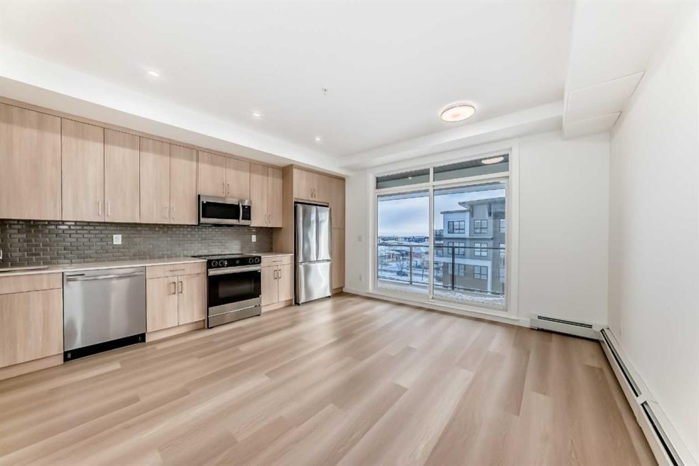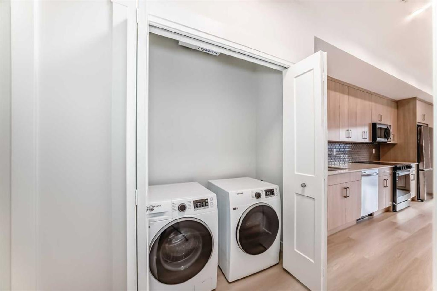 This is the Carr 2 floorplan, it is a one bedroom, one bathroom suite. This home features 41” upper cabinets with soft close doors and drawers, quartz countertops, luxury vinyl plank, and ceramic tile as standard in the bathroom, Samsung stainless steel appliances, pot lights, and 8' wide patio door, and titled surface parking. Situated in Logel Homes new development, Waterside at Mahogany, this home, spanning 543 sq. ft. (Builder's size) will allow you to experience the perfect combination of lake life and walkable amenities in a location like no other. Right at your doorstep, stroll along inner-city amenities with numerous retail and shopping experiences, including coffee shops, grocery stores, and restaurants. Enjoy the beautiful parks and pathways set alongside Mahogany Lake. Quick Possession Available