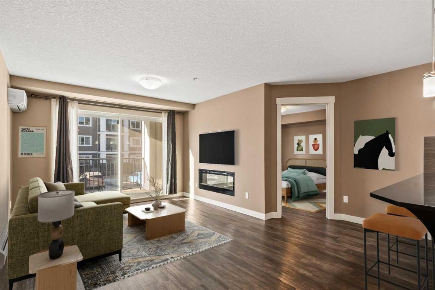 Welcome to Sage Hill, where comfort and convenience come together in this beautifully upgraded 2-bedroom, 2-bathroom low-rise condo. The kitchen is a true standout with rich cabinetry, a large island with seating, and plenty of space for everyday living and entertaining. The open layout includes a dedicated dining area and a bright, spacious living room that’s easy to furnish. Luxury vinyl plank flooring runs through the main living areas for a modern, seamless look, while both bedrooms feature soft carpet for added comfort. West-facing windows fill the home with natural light, and the private balcony with a gas hookup is the perfect spot to enjoy summer evenings. The primary bedroom includes a walk-through closet and a 4-piece ensuite with double sinks and great storage. The second bedroom is bright and versatile, located next to a second full bathroom with a tub/shower combo. You’ll also love the in-suite laundry with extra shelving, air conditioning via the wall unit in the living room, a titled underground parking stall and a secure underground storage locker for seasonal items. Sage Hill is a fantastic NW community with walking paths, green space, nearby shopping, restaurants, and quick access to Stoney Trail and Shaganappi Trail. Perfect for first-time buyers, downsizers, or investors—this home checks all the boxes!