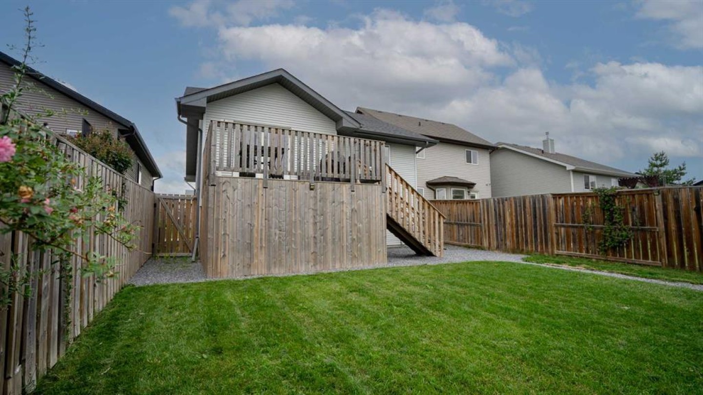 IMMEDIATE POSSESSION AVAILABLE! Don't miss this 4 bedroom 3 bathroom bi-level in desirable Ryder's ridge subdivision...only a few blocks from the lake. This home is situated close to schools, shopping, all essential amenities, parks/playgrounds. As you enter the home from the southern facing front veranda you will be greeted by a spacious entry way with coat closet. Upstairs you will find 3 bedrooms on the main level, including a good size primary bedroom with 4 piece ensuite. The living room has plenty of natural light, laminate flooring and a vaulted ceiling. The kitchen has a centre island, built in pantry, dining area and comes complete with black stove/fridge(with water & ice)/dishwasher/microwave. Just through the garden doors off the dining room you will find a large deck overlooking the spacious fenced rear yard with parking pad. The basement is fully finished (except for flooring) and includes a large family room, bedroom, 4 piece bathroom and an area that could be framed in for a 5th bedroom or used as is as a games/craft area.