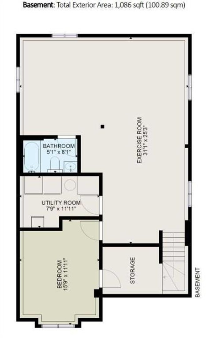 Electric Dryer Hookup, In Basement, Washer Hookup