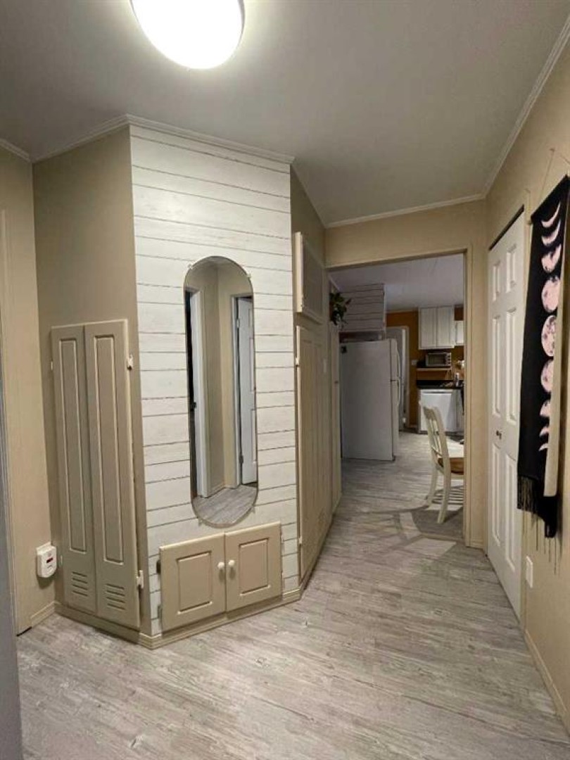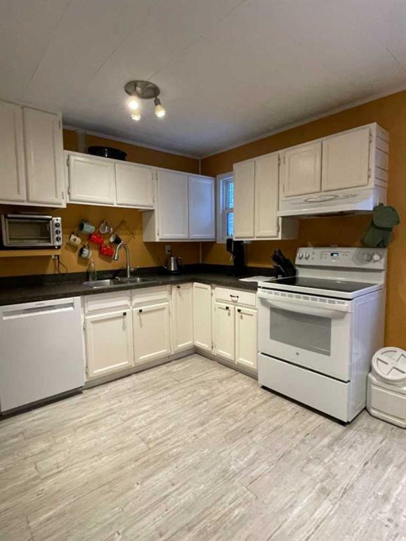 Here it is.... "Perfect Starter Home", or perhaps you are a "Empty Nester" looking to downsize?? This home is just "Perfect" for you.... This 960 sq. ft. Bungalow has had upgrades recently to include, New Flooring, New Built in Dishwasher, New Range, New Paint throughout and much much more.... Not to often you have the opportunity to find that perfect "Move In Ready", home that only requires "YOU". The large entrance way into the porch boasts loads of cupboards and is home to the washer & dryer. Spacious bright kitchen and dining area that allows you to relax with your morning coffee and enjoy the breathtaking view of the back yard. West facing living room allows for the afternoon sun to beam through the large window. 3 good sized bedrooms and 4 pc bathroom with soaker tub completes this home. Why not settle in to your lawn chair resting on the rear large deck. Double Car Garage with back alley access, Oversized fenced yard, Manicured lawn, and Matured tress are just the beginning. Now is the perfect time to buy.