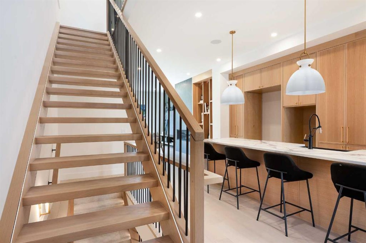 Located on sought-after Broadview Road in the inner-city community of Hillhurst, this brand new 3+1 bedroom home with CITY & RIVER VIEWS, built by D & M Custom Homes, offers nearly 3400 sq ft of meticulously developed living space exhibiting top quality & exquisite attention to detail throughout. The open & airy main level presents wide-plank hardwood flooring, lofty ceilings & stylish light fixtures, showcasing the front dining area & kitchen that’s beautifully finished with quartz counter tops, large island/eating bar, plenty of storage space & stainless steel appliance package. The living room is adjacent to kitchen & is anchored by an eye-catching feature fireplace & built-ins. A mudroom & 2 piece powder room complete the main level. The second level hosts 2 spacious bedrooms plus a laundry room with sink & storage is conveniently situated in the hallway. On the third level, the primary retreat is a true private oasis boasting a large bedroom with access to the north balcony with city vistas, two custom walk-in closets & opulent 5 piece ensuite featuring heated floors, gorgeous vanity with dual sinks, relaxing freestanding soaker tub & oversized glass shower. A second south facing balcony with city & Bow River views is accessed just down the hall. Basement development includes roughed-in in-floor heat, a spacious family/media room with wetbar, fourth bedroom & 3 piece bath. Other notable features include roughed-in air conditioning & built-in speakers throughout. Outside, enjoy the sunny south back yard with patio & access to the double detached garage. This stunning home is located just blocks to scenic Bow River pathways & close to trendy Kensington, Riley Park, SAIT, U of C, schools, shopping & is walking distance to the downtown core.