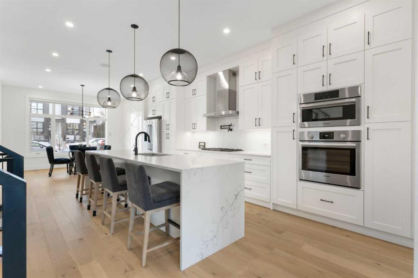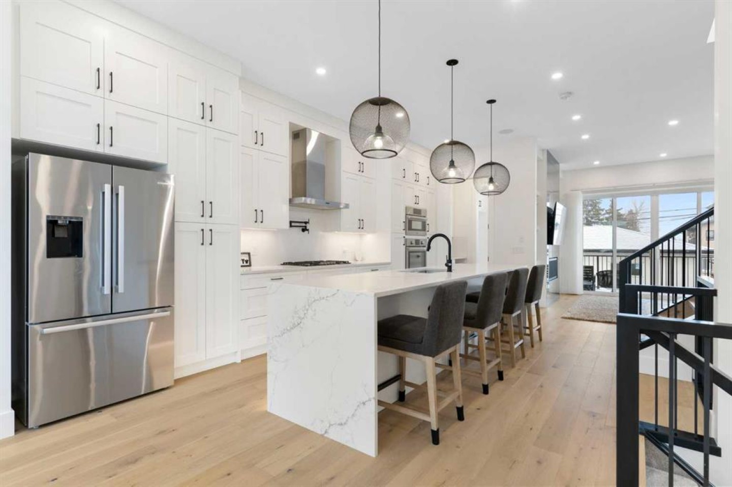The kitchen is a true showstopper with a Bosch appliance package, toe-kick and cabinet lighting, a pot filler, herringbone tile backsplash, and a massive 12’ quartz island with waterfall edges. The main living area was made to entertain and flows seamlessly outdoors through an impressive 8’x8’ patio door assembly onto your private deck. Upstairs, the layout continues to impress with 4 bedrooms and 4 bathrooms, a loft-style entertainment area, and a full laundry room with sink. You’ll also find two spacious secondary bedrooms and a stunning primary retreat featuring vaulted ceilings, a wall of windows, a generous walk-in closet, and a beautifully upgraded 5-piece ensuite. Transom windows on the second level and skylights take the natural light to another level and add to the home’s bright, airy feel. Downstairs offers even more space to relax and host, with a full entertainment zone featuring built-ins, a wet bar with black tile backsplash, wine storage, beverage fridge area, sink, plus a full bathroom, an additional bedroom, and a dedicated gym with rubber flooring and floor-to-ceiling mirrors. Simply put, you can’t build this property today for anywhere close to the same price—and even if you could, it wouldn’t be on a 120’ deep lot in a location like this. Priced to sell, don’t wait to book your showing or reach out for more details. And when you live in Tuxedo, you’re not just buying a home—you’re buying one of Calgary’s best inner-city lifestyles.
