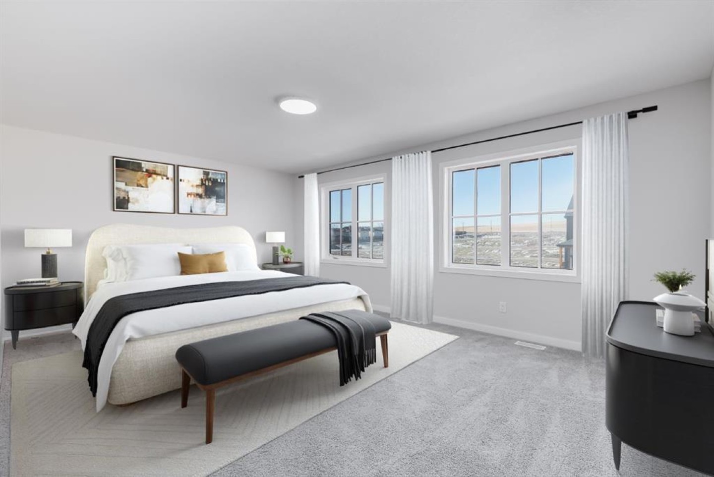 THE SAGE by Baywest Homes offers over 2,200 sq. ft. of well-designed living space above grade with 3 bedrooms, 2.5 bathrooms, a bonus room, and a main-floor office. Situated on a spacious lot with an east-facing backyard, this home blends style, comfort, and functionality with an estimated possession of February 2026. The open-concept main floor features a bright great room with a cozy fireplace and oversized windows, flowing into a chef-inspired kitchen with 42” cabinets, quartz countertops, upgraded appliances, gas range, chimney hood fan, and a walk-through pantry connecting to the mudroom. Sliding patio doors lead to the east-facing backyard. Upstairs includes a generous bonus room with adjacent tech space, a primary retreat with walk-in closet and ensuite featuring a separate soaker tub and shower, two additional bedrooms, a full bathroom, and a dedicated laundry room. Additional features include triple-pane windows, 9’ basement ceilings, modern railing, and a double attached garage. Built by Baywest Homes, known for quality craftsmanship since 1985, and backed by a 10-Year Alberta New Home Warranty plus one-year builder warranty. About the Community: Sawgrass Park in NW Airdrie is a vibrant new community by Hopewell, featuring lush green spaces, serene wetlands, and upcoming plans for a new school and recreation amenities such as a splash park and pickleball courts. It’s the perfect place to build lasting memories—and you’ll be among the first to call this exciting neighbourhood home. There is no showhome in this area so please contact the listing agent to arrange a showing.