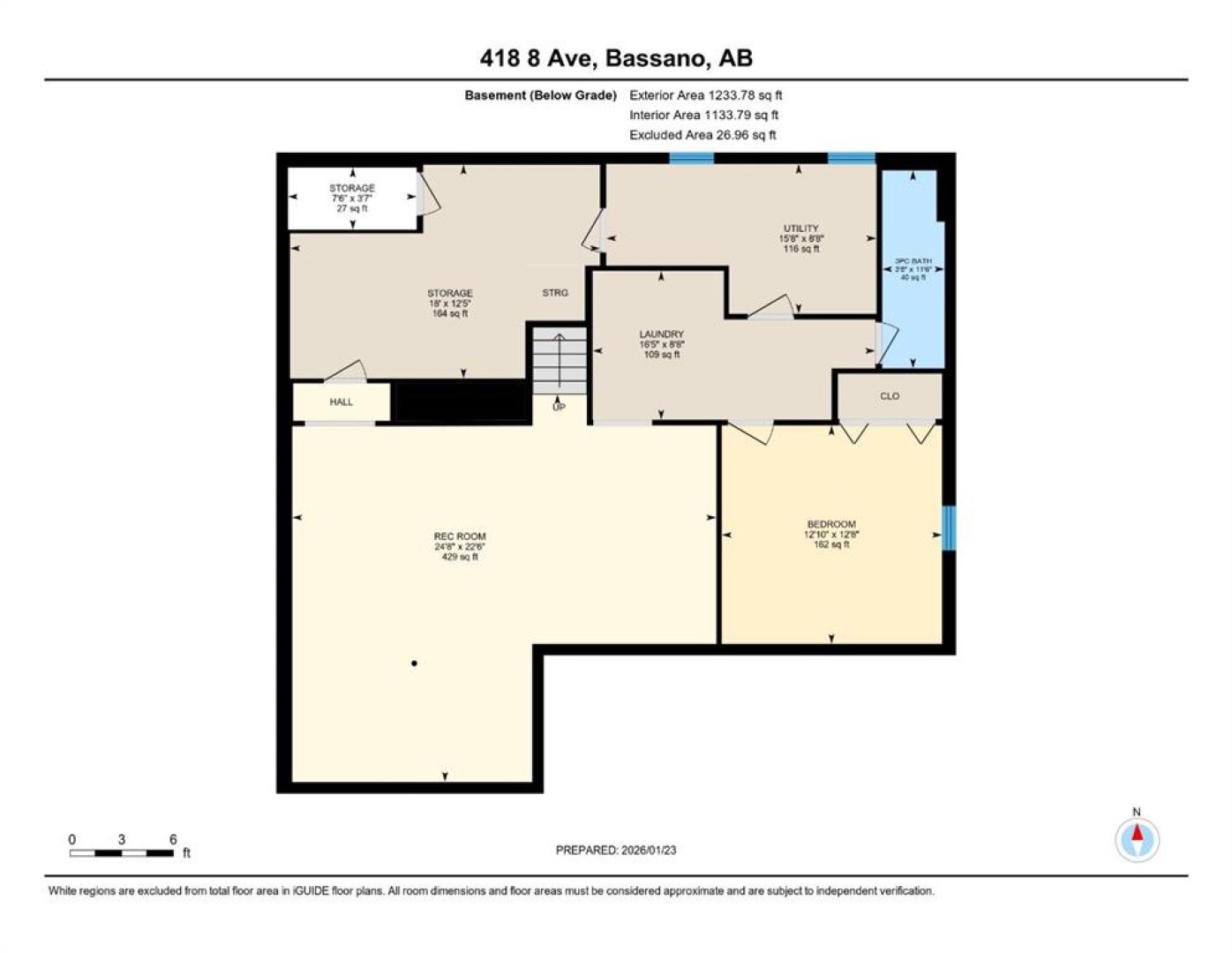 Double lot. Front driveway. Huge backyard with room for a garage. Welcome to 418 8th Ave located in Bassano! This spacious bungalow gets lots of natural light and has a layout that just makes sense. Upstairs features a family room, a kitchen with a dining area that opens to the back deck, a main four piece bathroom, and three bedrooms. The primary bedroom includes its own three piece ensuite. Downstairs offers another family room, an additional bedroom, and a three piece bathroom. If you want a family home with a great yard and a layout that works, this could be the one!