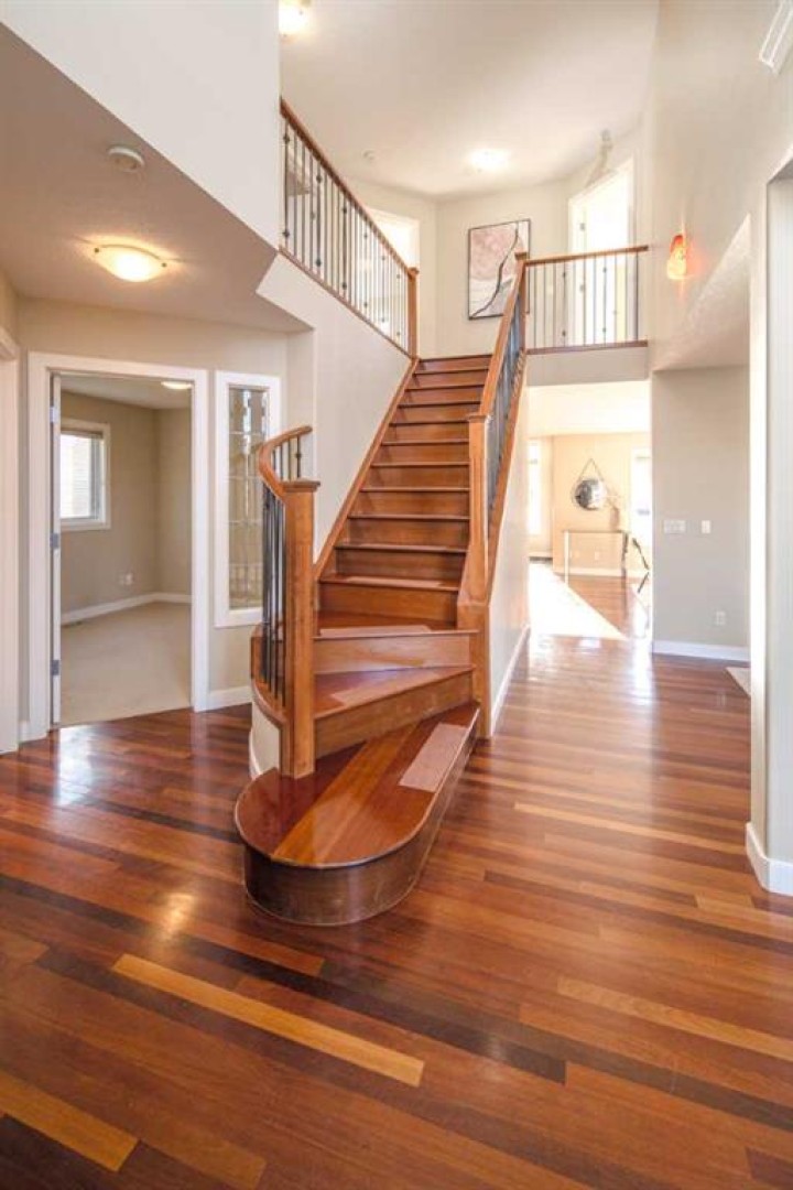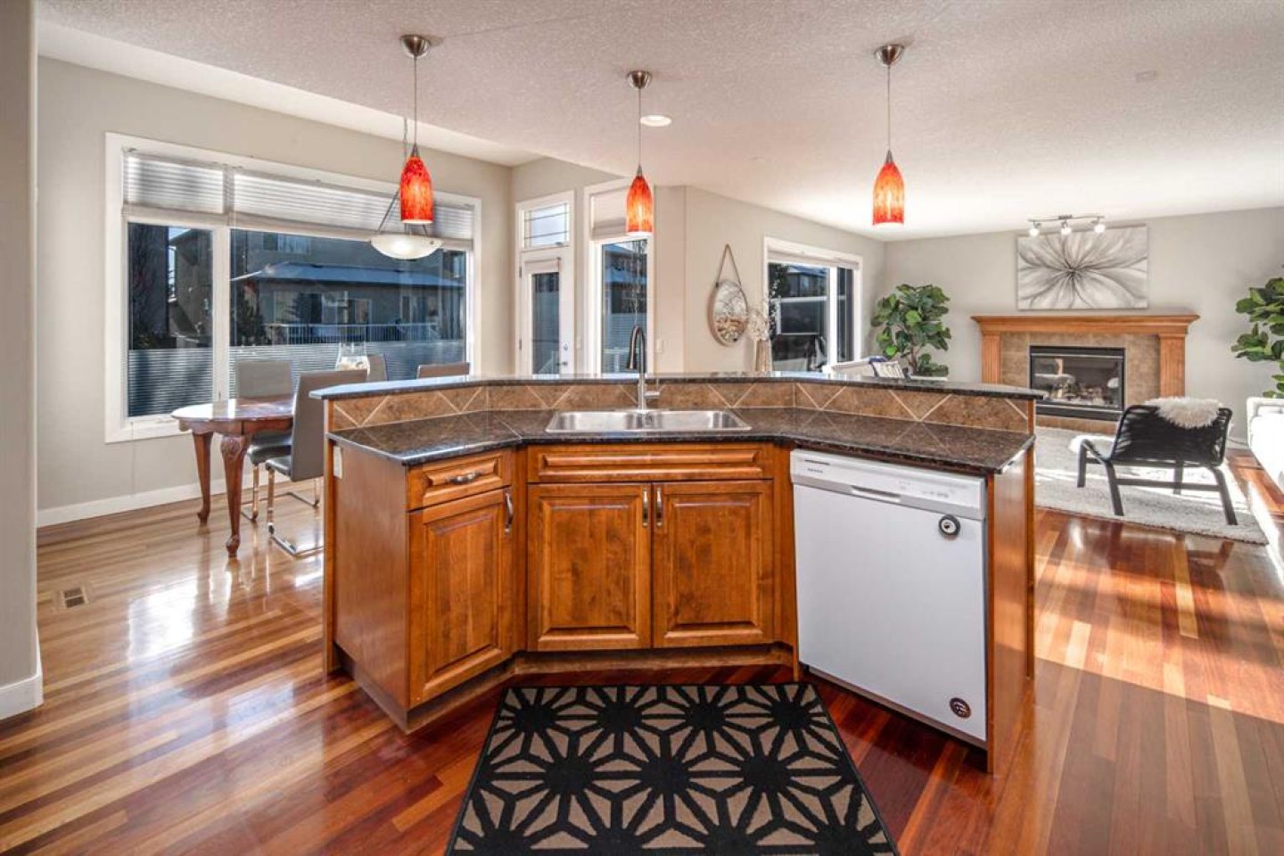 Open House Sunday, January 25, 2026, 1:00–3:30 PM. Sunny, stylish, and ideally located, this well-kept “Jensen” home with a walk-up basement sits just steps from the scenic pathways of Fish Creek Park. The open-concept layout features cherry hardwood flooring, vaulted ceilings, and oversized picture windows that flood the home with natural light. Entertain with ease in the elegant living and dining areas, relax in the cozy family room with tile fireplace and cherry mantel, and enjoy the chef-inspired kitchen complete with granite countertops, cherry cabinetry, designer tile backsplash, Italian glass pendant lighting, and a sun-filled breakfast nook. A main-floor office adds flexibility, while upstairs offers three bedrooms including a spacious primary retreat with walk-in closet and 4-piece ensuite. The unspoiled walk-up basement offers endless future potential. Roof replaced in 2021, with quick access to Costco, shopping, and Stoney Trail—this is the perfect blend of comfort, style, and location.