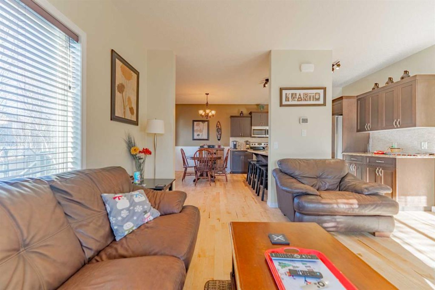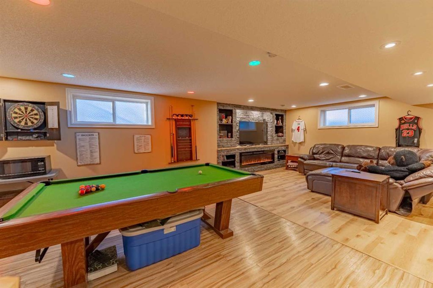 Welcome to 142 West Pointe Circle, a charming detached family home tucked away on a quiet cul-de-sac just steps from the Bow River. Located in one of Cochrane’s most sought-after neighbourhoods, this home offers the perfect blend of retreat, convenience and entertaining. The West Pointe community is known for its gorgeous walking trails, riverfront scenery, and ideal proximity to elementary schools and daycares — all while feeling just far enough removed from downtown to offer a peaceful, nature-connected lifestyle. Inside, the main level features a thoughtful layout with a warm, natural flow between the living room, kitchen, and laundry room. While not fully open-concept, each space is connected in a way that feels comfortable and intuitive for everyday family living. Upstairs, the staircase splits into two inviting wings. To the right, a bright and spacious family room awaits — flooded with natural light from large windows and offering the perfect spot for movie nights, a play area, or a cozy second living room. To the left are the home’s three bedrooms, including the primary suite overlooking the front of the property. This retreat features a generous walk-in closet and a well-appointed 4-piece ensuite with a soaking tub and separate shower. The basement is a true standout, designed for those who love to entertain and relax. A custom stone feature wall anchors a built-in entertainment area complete with a Napoleon electric fireplace for cozy atmosphere and visual appeal. On the opposite end, the same stonework ties into an impressive wet bar, creating a stylish, cohesive “man-cave” vibe. There’s ample space for a comfortable TV seating area as well as room for a full-sized pool table — the perfect setup for game nights, gatherings, or unwinding in your own private retreat. Outside, the backyard continues to elevate the lifestyle this home offers, with a spacious hot tub and stone sitting area ideal for evening fires and outdoor entertaining. A double attached garage and built-in dog run/kennel add convenience for both owners and pets. Beautifully located, thoughtfully designed, and loaded with character, 142 West Pointe Circle is a true gem for families seeking comfort, community, and Cochrane’s natural beauty right at their doorstep.