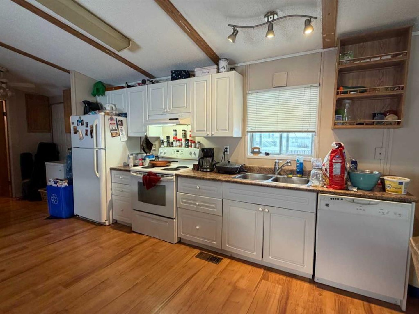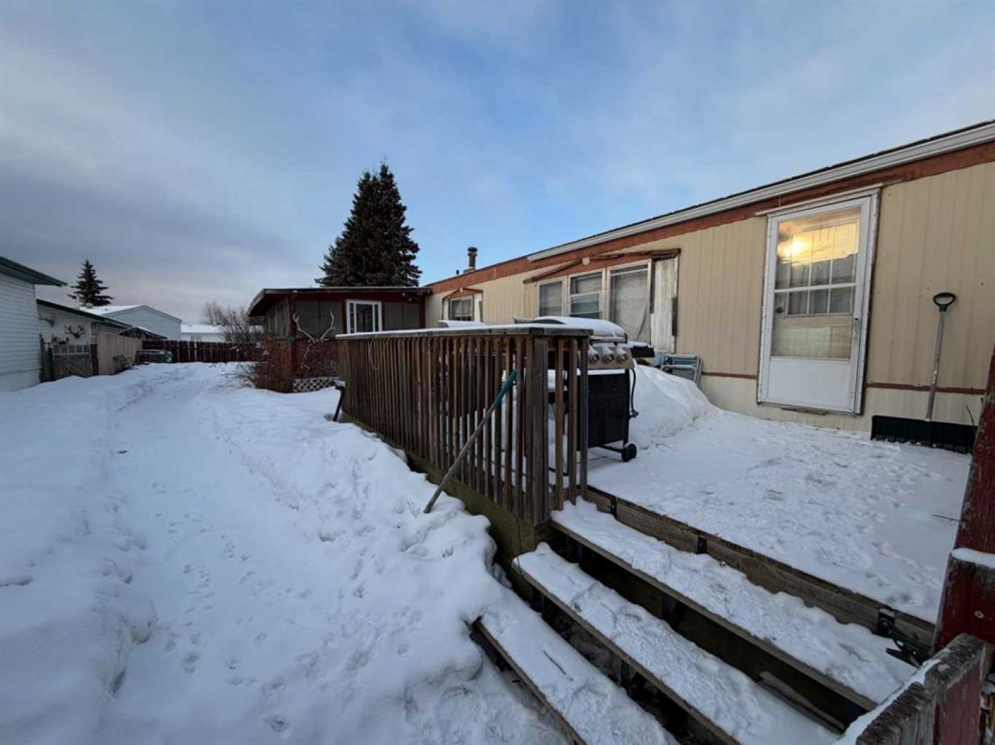 Investment, or your new home. Here is an opportunity to assume existing tenants, or take vacant possession, with the land included ! This 3 bedroom home with 2 full bathrooms including the primary ensuite which has a big soaker tub and plenty of room. Nice peaked roof line through the kitchen and living room, vinyl plank flooring through most of the home. Kitchen has been replaced at one point in time as it is no longer original. There is a large deck onto the fenced yard, off street parking for two, as well as a covered deck off the back door of the home. There are no apparent leaks in the roof, the furnace works well, and the pipes never froze through the last cold spell. Move in and make it yours.