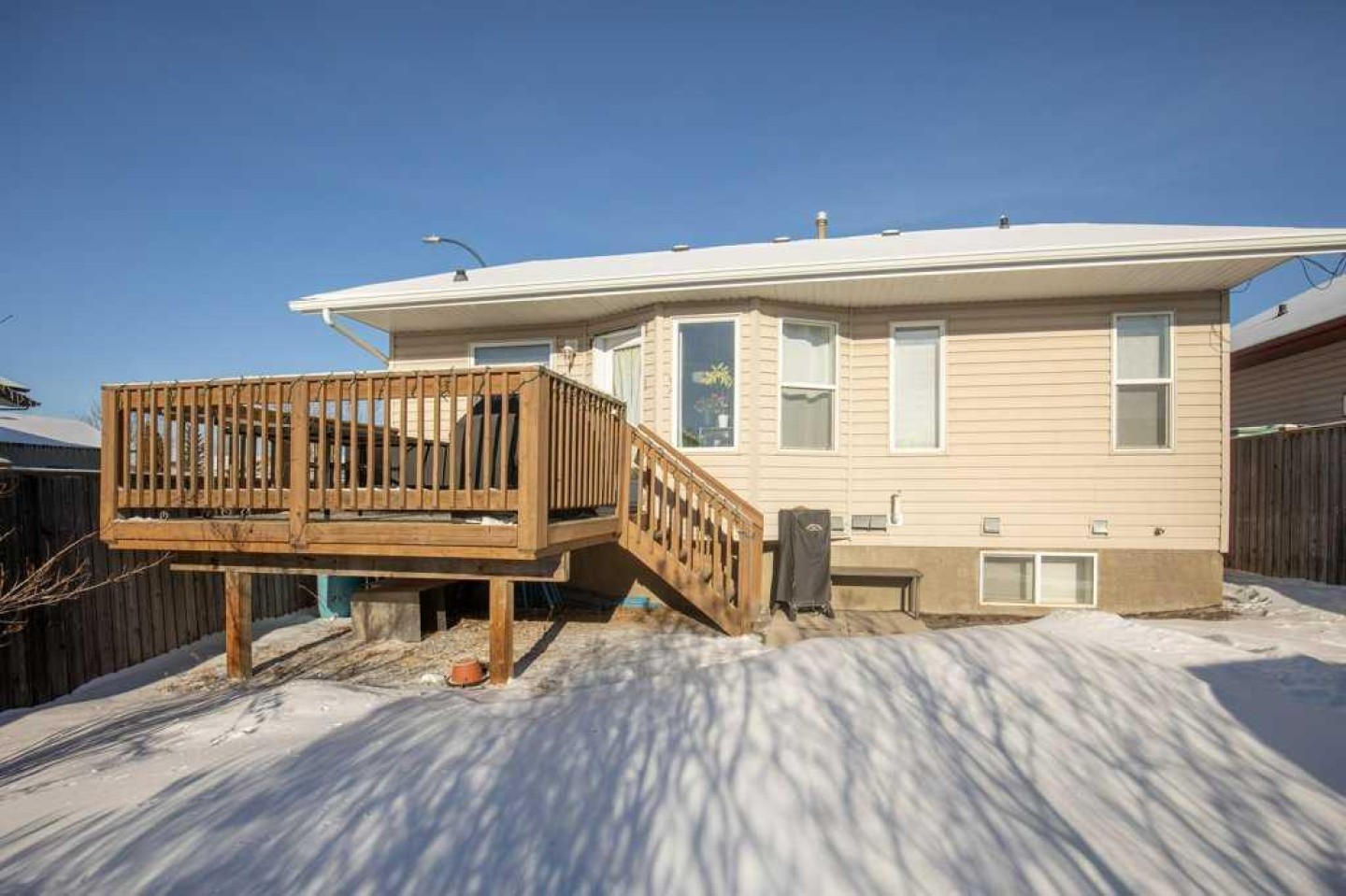 Welcome to this fully finished bungalow tucked away in the highly desirable Rosedale Meadows neighbourhood—a mature, family-friendly community that’s perfect for growing families. This solid home delivers over 2,065 square feet of developed living space with a practical, functional floor plan designed for real everyday life. On the main floor you’ll find convenient main-floor laundry, a bright and spacious living room featuring beautiful Imperial Walnut hardwood flooring and vaulted ceilings, plus a generous kitchen with tons of counter space wrapped around a centre island—making meal prep and family gatherings easy and enjoyable. Upstairs there are two large bedrooms, including the master suite with its own private 4-piece ensuite, and both bathrooms boast luxurious granite heated floors for that extra comfort. Downstairs opens to a massive family room anchored by a cozy gas fireplace with fan—ideal for keeping everyone warm through those long Alberta winters—along with two more good-sized Jack & Jill bedrooms that share a convenient 4-piece bathroom, perfect for kids, guests, or teens who want their own space. There’s also plenty of open room for movie nights, watching the game, or even fitting a standard-sized pool table. Recent updates include a brand-new furnace and hot water tank installed in 2024, 30-year architectural shingles (2012), rough-in for central vacuum, and a handy tool/storage shed out back. Step outside to the rear deck—your go-to spot for summer barbecues, family get-togethers, or just relaxing while you overlook the beautiful, mature yard that’s fully fenced for privacy and peace of mind. Extra storage is sorted with the included toolshed for the mower and yard gear, and a 22×20’ double attached garage that handles vehicles, toys, and more. This is the kind of move-in-ready family home in a great neighbourhood that checks all the boxes—come see for yourself what Rosedale Meadows and this bungalow have to offer!