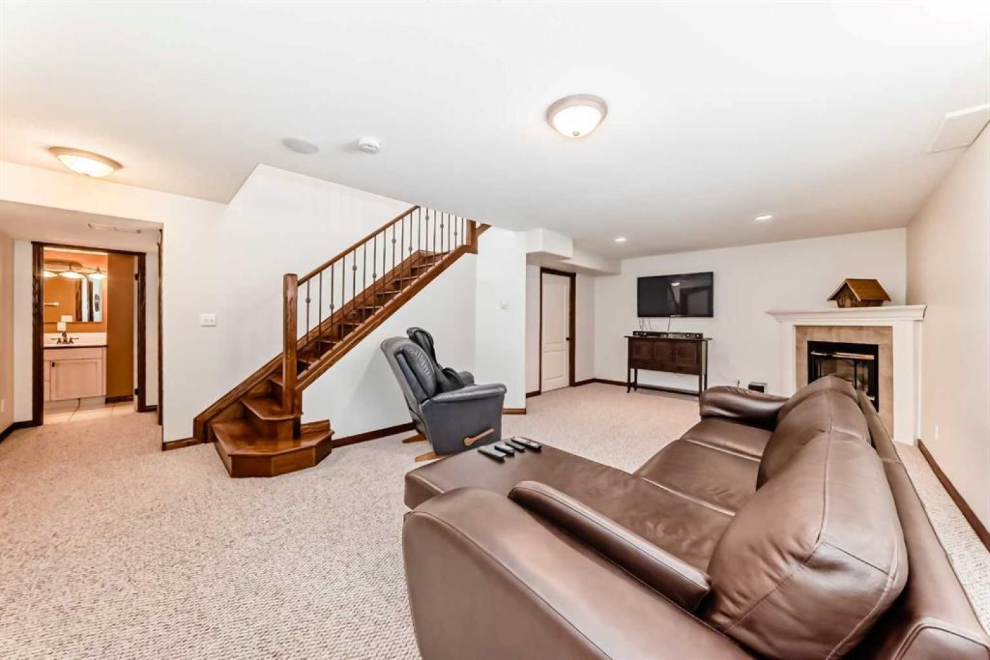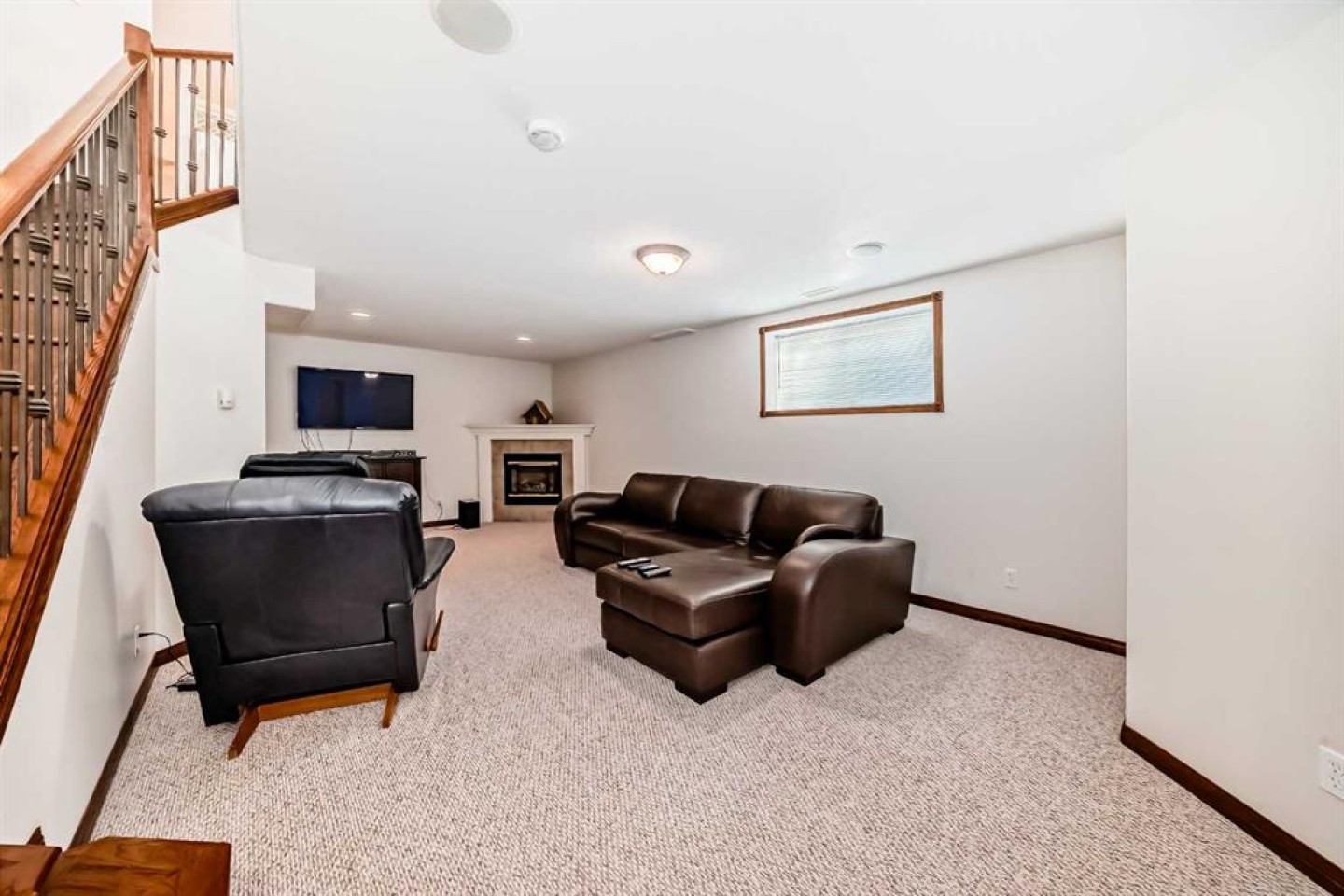 Laundry hookups are conveniently located on BOTH levels, and a front phantom screen door adds everyday ease. The fully developed basement offers two additional bedrooms, a 4-piece bathroom, ample storage/laundry space, and a large family room complete with a corner gas fireplace featuring thermostatic control—ideal for cozy evenings.