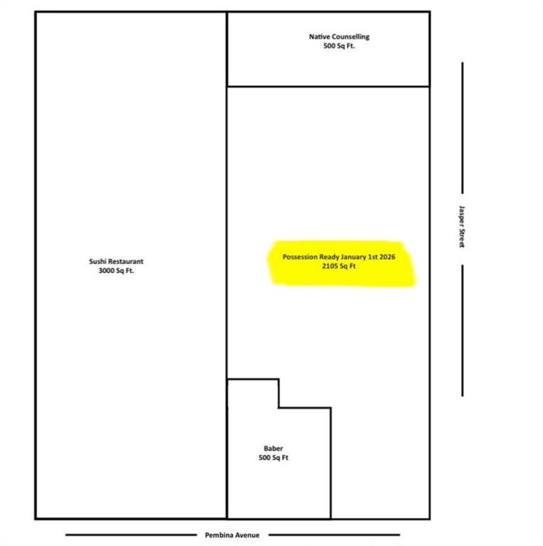 1,255 SqFt +/- Office space available for Lease with ample parking located in a corner lot building in the Green square. Building is across from The ATB and a doctors office. tEntrance faces Jasper Streer. Zoned C-NOD a variety of Commercial businesses are allowed.