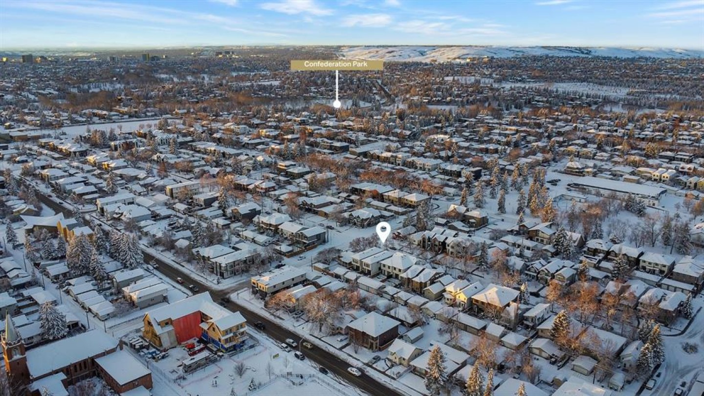 This MOVE-IN READY semi-detached home in MOUNT PLEASANT delivers that rare mix of thoughtful design, modern luxury, and everyday comfort. Wide-plank hardwood, custom built-ins, and oversized windows set the tone, and the open flow through the main floor makes the home feel both expansive and incredibly functional. You enter through a spacious foyer with a full front closet and sightlines straight through to the living room. An OFFICE sits just off the entry, tucked away enough for privacy while still connected to the main level. The living room sits at the front with a gorgeous feature fireplace and built-in shelving that brings a clean, designer feel to the space. Large windows open to mature street trees, giving the room a soft, natural backdrop. The dining area sits comfortably between the living room and kitchen, sized for hosting without feeling overly formal, with an incredible custom built-in full wall serving space with decorative storage and stunning inset lighting. The kitchen is where everything really comes together. Full-height custom cabinetry, quartz counters, designer lighting, and a HIGH-END APPLIANCE PACKAGE & POT FILLER make the room feel elevated yet approachable. A massive island with seating keeps the space social, and sliding glass doors to the SOUTH back patio fill the space with natural light and make indoor & outdoor entertaining a breeze! Just off the kitchen, the MUDROOM includes custom storage and easy access to the backyard and garage, keeping daily life organized. A stylish 2-piece bath completes the main floor. Upstairs, the PRIMARY SUITE feels like a true retreat, bright and spacious with room for a full furniture layout, while the walk-in closet is neatly designed for maximum usability. The ensuite delivers a spa-like feel with a large designer soaker tub, dual sinks, and an oversized walk-in shower. Two additional bedrooms sit across the hall, each with great closet space and large windows. The main 5-piece bathroom features dual sinks and modern finishes, making it ideal for a busy household. A full laundry room on this level adds convenience and extra storage. The lower level offers even more flexibility with an EXTENDED BASEMENT LEGAL SUITE w/ 3-BED, 2-BATH. With a full KITCHEN, large rec room, 3 bedrooms, 2 bathrooms, laundry & plenty of storage, this level opens the door to multigenerational living, long-term guests, or additional rental income. The layout is practical, the rooms are well-sized, and the finishes are clean & modern. And the location ties it all together. You’re in the heart of a walkable, established community surrounded by tree-lined streets. Confederation Park, Kensington, and the downtown core are all within easy reach. Quick access to 14th Street, Crowchild Trail & major transit routes makes commuting simple, while nearby cafes, local restaurants, playgrounds, and green spaces create that everyday convenience everyone’s looking for. *photos from show suite some finishes may vary