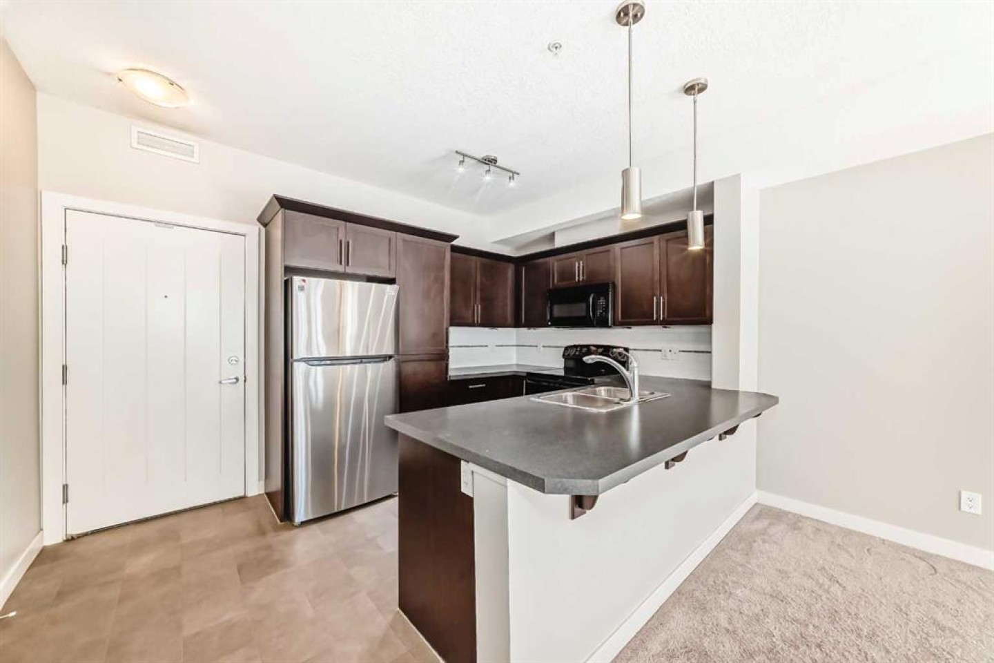 Located in the sought-after Red Haus complex in Royal Oak, this well-appointed one-bedroom condo offers comfortable, low-maintenance living in a highly convenient NW Calgary location. With easy access to shopping, dining, schools, the Rocky Ridge YMCA, C-Train service, and major roadways including Stoney Trail, everything you need is close at hand. Set on the second level, this open-concept home overlooks the attractively landscaped inner courtyard and features a private balcony with a natural gas hookup, perfect for outdoor cooking or relaxing. The kitchen is thoughtfully designed with stainless steel appliances (brand new fridge), generous cabinet and counter space, and a breakfast bar that connects effortlessly to the living area, creating a welcoming space for both everyday living and entertaining. A built-in desk area adds functionality and works perfectly as a home office or study nook. The bedroom is spacious and includes a walk-through closet that leads directly to the four-piece bathroom, where the in-suite washer and dryer are conveniently located. The unit also comes complete with titled underground parking, a titled storage locker, bike storage, and ample visitor parking. Residents enjoy access to shared amenities housed in the central clubhouse, including a fitness centre, a multi-purpose meeting room with kitchen facilities, and an outdoor patio area. This is a great opportunity to own in a well-run condo complex within one of NW Calgary’s most desirable communities.