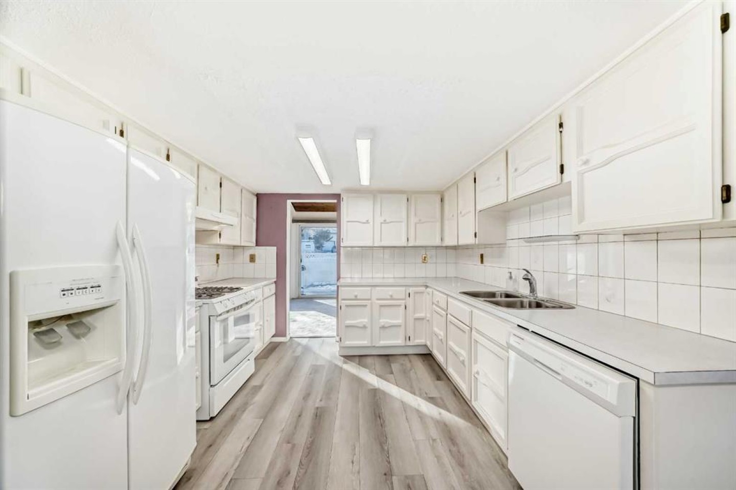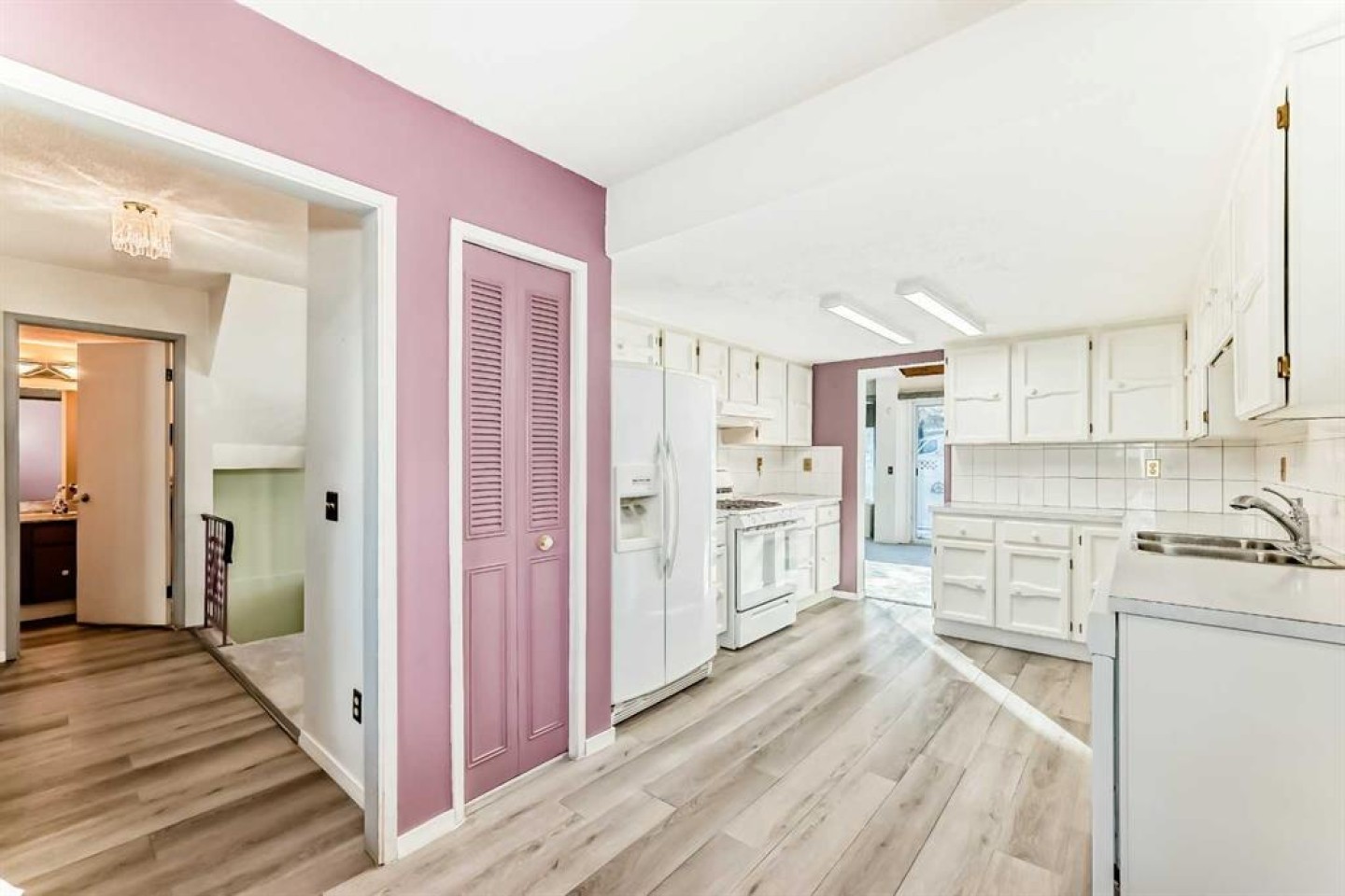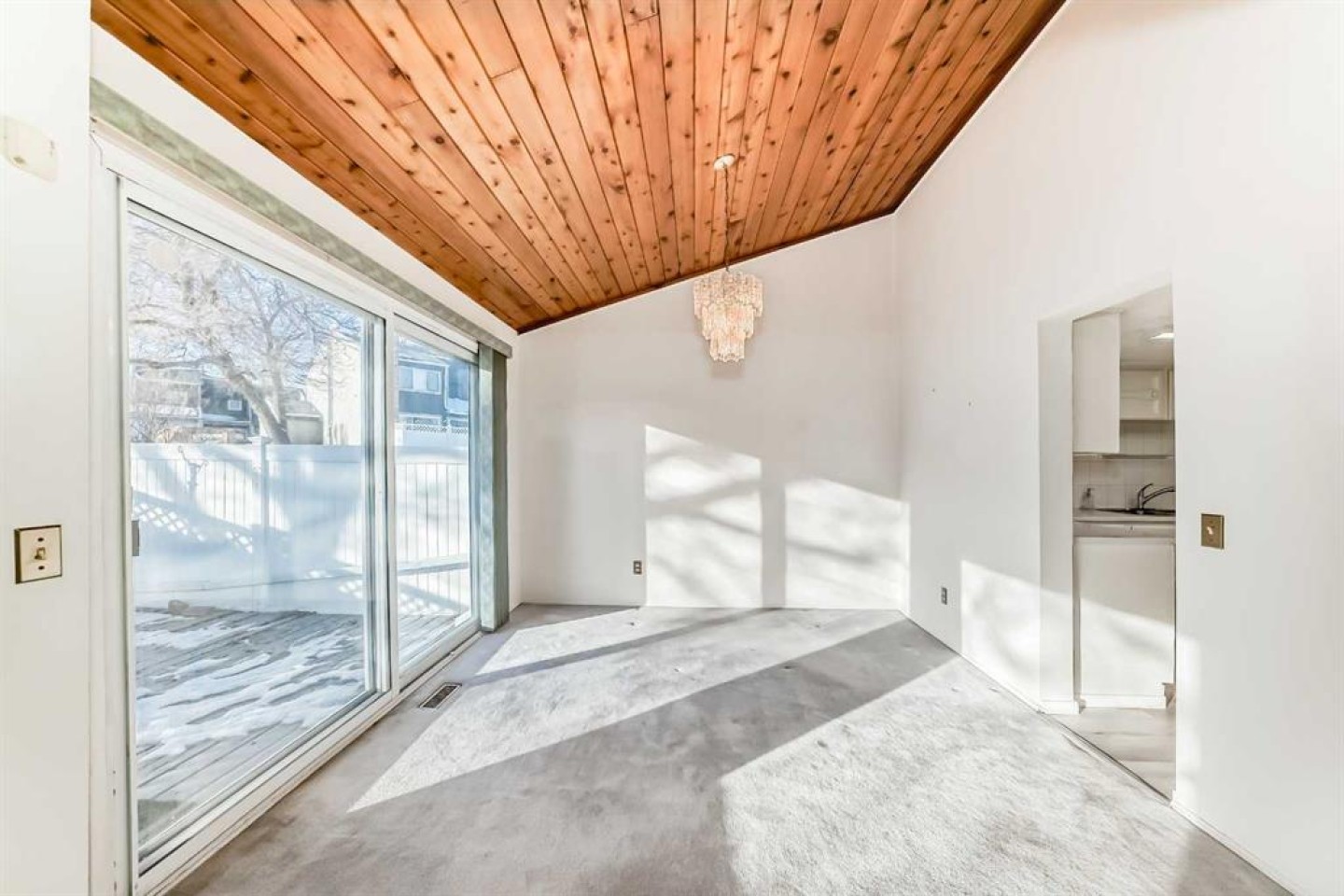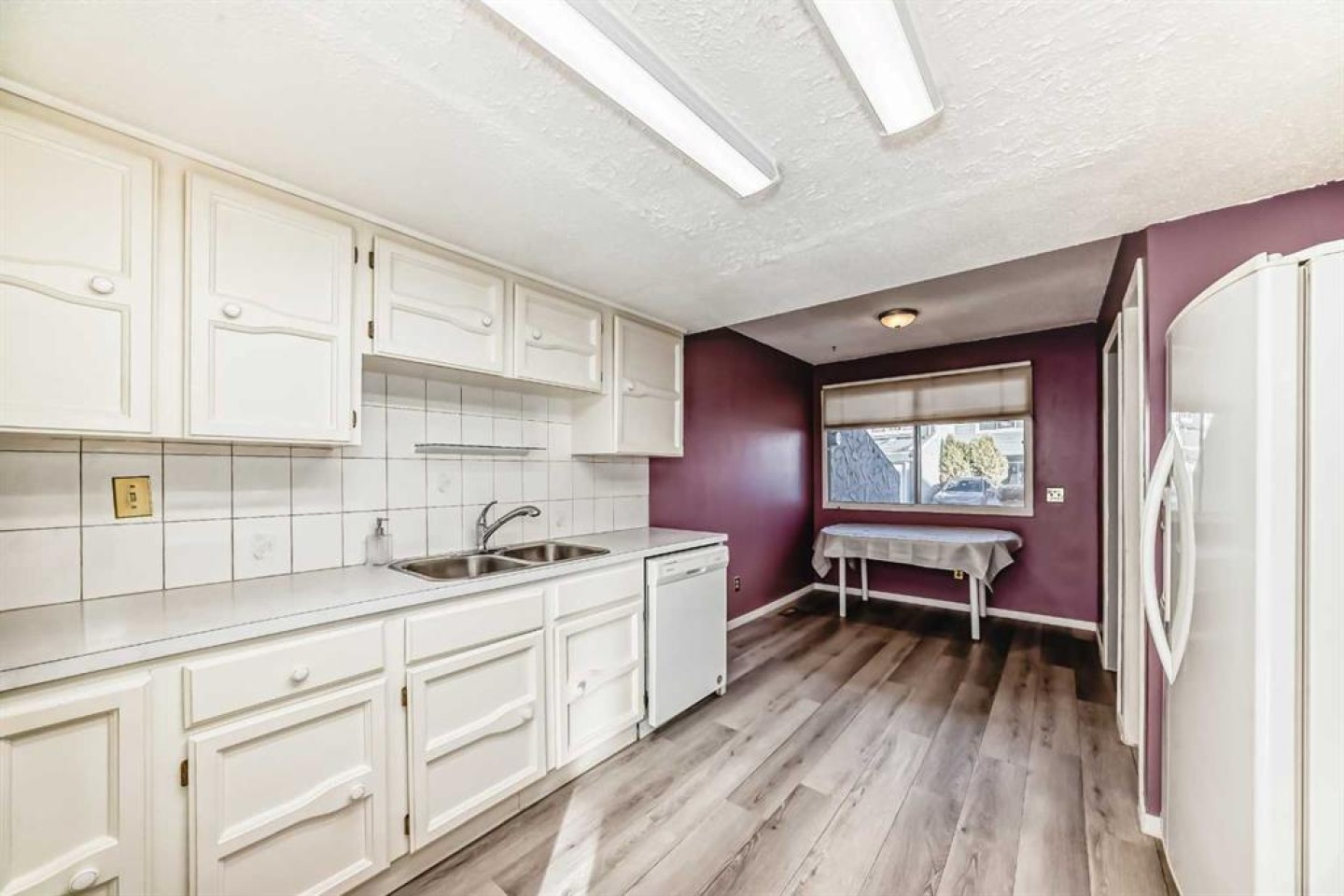 Welcome to a large townhouse in a well maintained complex in the heart of Thorncliffe. This well priced home is great for a first time buyer or a couple wishing to downsize. The home has been well maintained and owned for a number of years. Main floor has a large living room with a wood burning fireplace. There is a dining room that is spacious along with large windows overlooking the backyard. A large decking area (15ft x 18ft) with options for a BBQ looks east into the cul de sac. The kitchen has good size with a 2nd seating area for quick meals. There is a gas stove/oven set up that buyers will appreciate. There is ample counter space for preparing meals. The upper level has 3 sizable bedrooms and 2 full baths. Each bathroom has its own bathtub. The laundry is located in the lower level and comes with additional shelving for detergents and other items. There is a small work shop along with a spacious storage room. There is a large rec room where a media centre could be set up. Home has a single attached garage (12ft W X 21 ft D)along with a smaller parking spot outside the front entrance. The complex has visitor parking close by. You are also walking distance to the beautiful Nose Hill Park and the area has a number of schools close by.