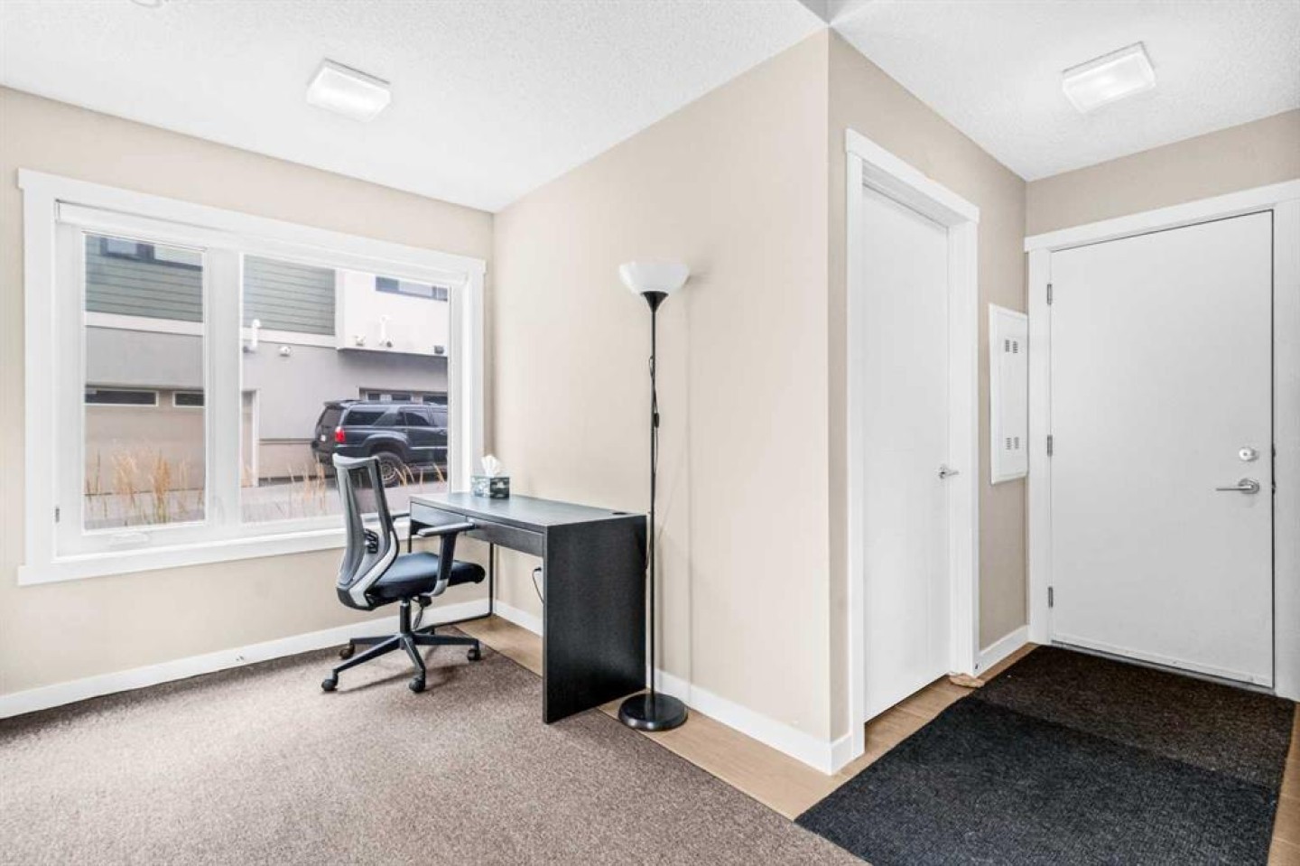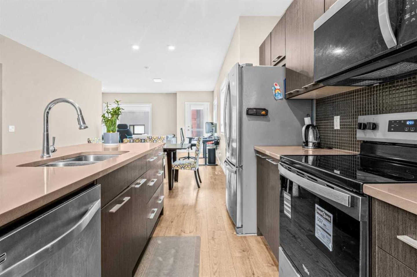 As you step inside, you’re welcomed by a functional mudroom with direct access to the garage and a SUN FILLED DEN surrounded by large windows, ideal for a home office or flex space. The main living level showcases HIGH CEILINGS and OVERSIZED WINDOWS that fill the home with natural light. The OPEN CONCEPT layout is perfect for entertaining, with a formal dining area flowing into the spacious living room and modern kitchen featuring STAINLESS STEEL APPLIANCES, ample cabinetry, and generous counter space. This level is complete with a 2 piece bathroom, stacked laundry, and a LARGE PRIVATE BALCONY perfect for relaxing on warm days.