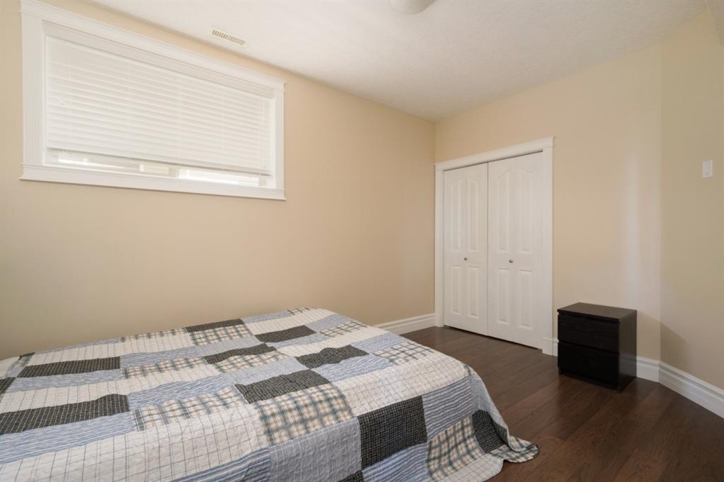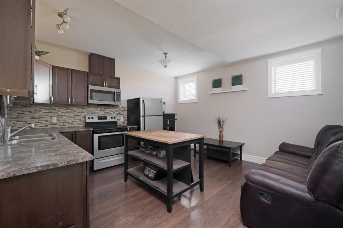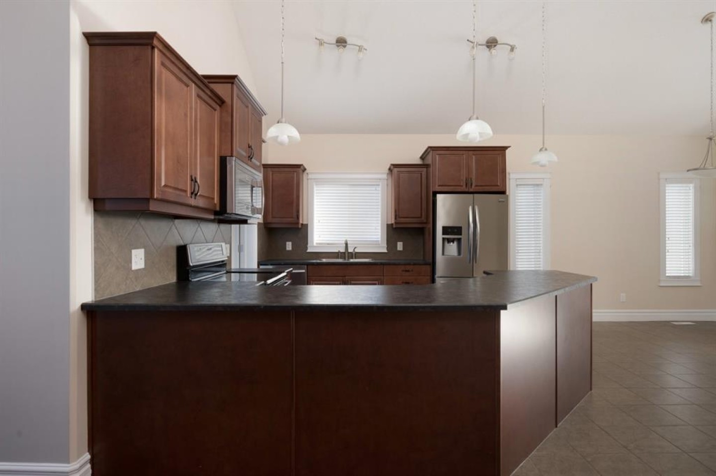 BACKING ONTO TREELINE! The first thing you will notice upon entering this home is how open and spacious this floor plan is. Offering a large entry way and huge dining nook open to the kitchen. The kitchen is rich with dark cabinetry, stainless steel appliances, lots of countertop space and has access to the backyard. Off the kitchen is the living room with vaulted ceilings, gleaming hardwood floors and a cozy gas fireplace. Also on the main level is the main bathroom and 2 bedrooms. The large master suite is tucked away above the garage and offers an abundance of natural light, a walk in closet and a 4PC ensuite with corner jet tub and separate shower. The basement is fully developed into a 2 bedroom LEGAL BASEMENT SUITE with full kitchen, laundry, separate entry and plenty of natural light. The attached garage is heated and ready for a hockey fan with the floor painted as a hockey rink. Enjoy Northern Alberta’s sunset from your West facing backyard which backs onto the forest and walking trail. Basement furnishings are negotiable.