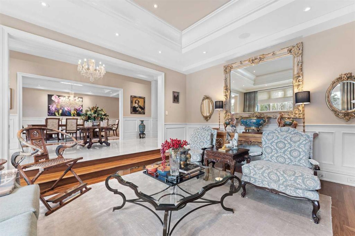 Offering an expansive 7,899 sq. ft. of living space, the home includes six bedrooms, five of which feature private ensuite bathrooms with heated floors—providing exceptional comfort and privacy. Upon entry, heated Crema Marfil marble flooring flows seamlessly throughout, leading you to the stunning chef’s kitchen, truly the centerpiece of the home. Outfitted with top-tier appliances, including a Wolf gas range and a Miele refrigerator/freezer (2025), this kitchen is perfectly equipped for culinary excellence.