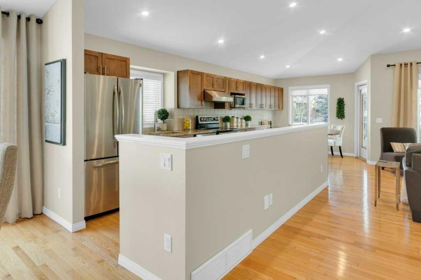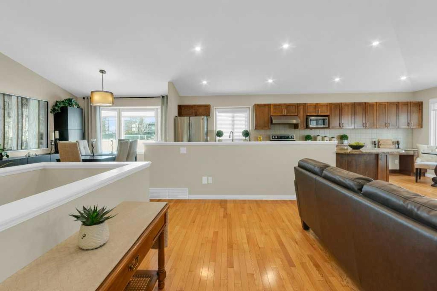 Additional highlights include central air conditioning, a high-efficiency furnace, poly-B plumbing fully replaced, Luxury Vinyl Plank in lower level, flat painted ceilings, and numerous LED pot lights for a modern, polished finish.