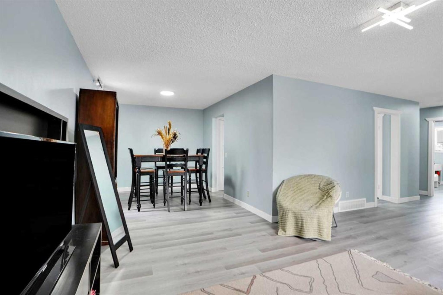 The main floor features a large living room, dining room, new kitchen with an eating area, and a new full bath. There are three sizeable bedrooms on the main floor, with the master bedroom having its own two-piece en suite.