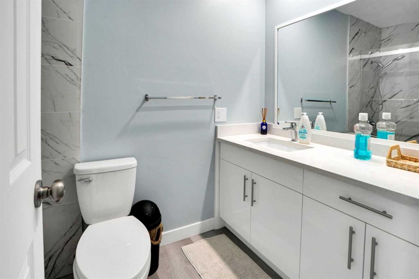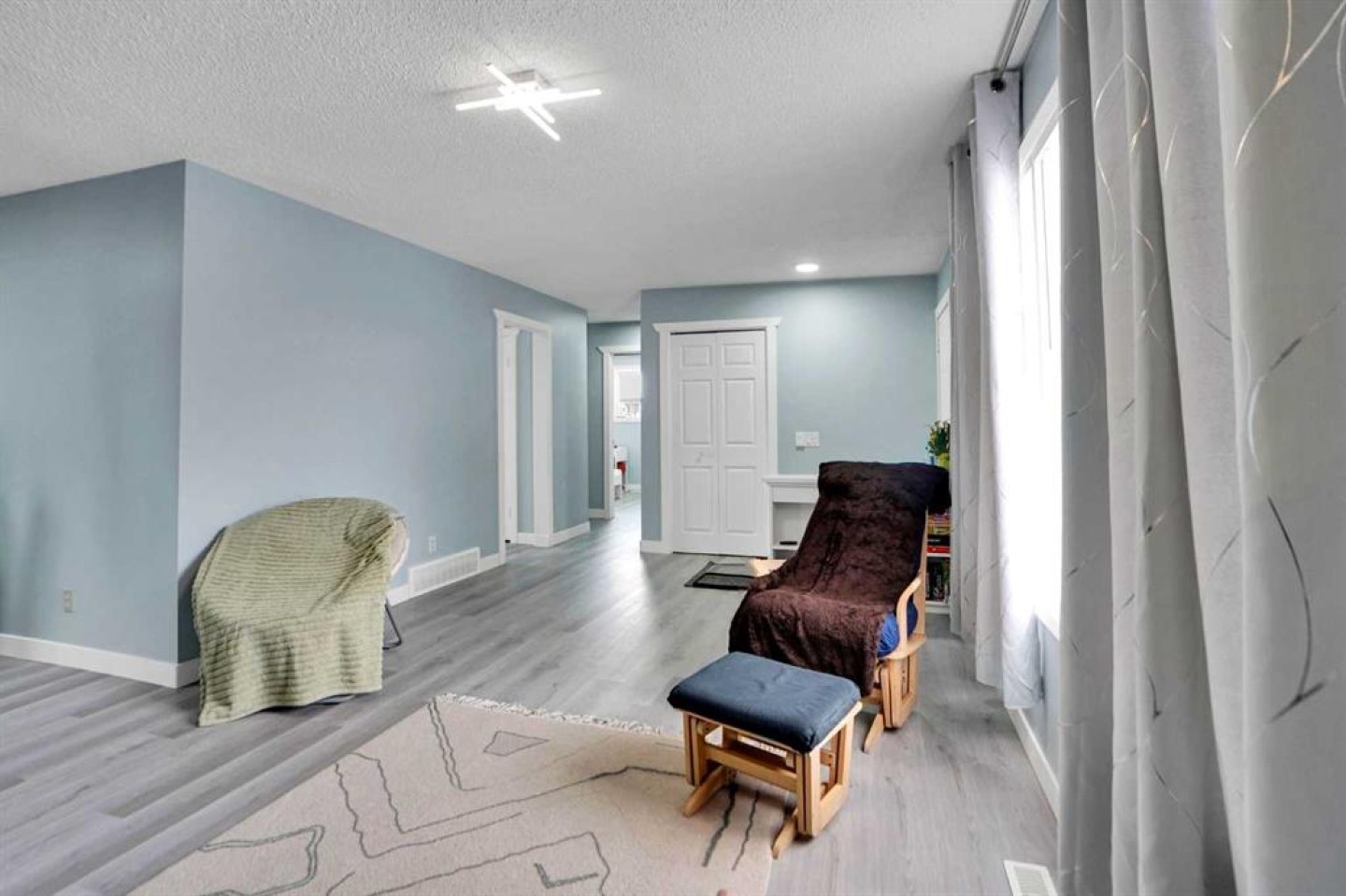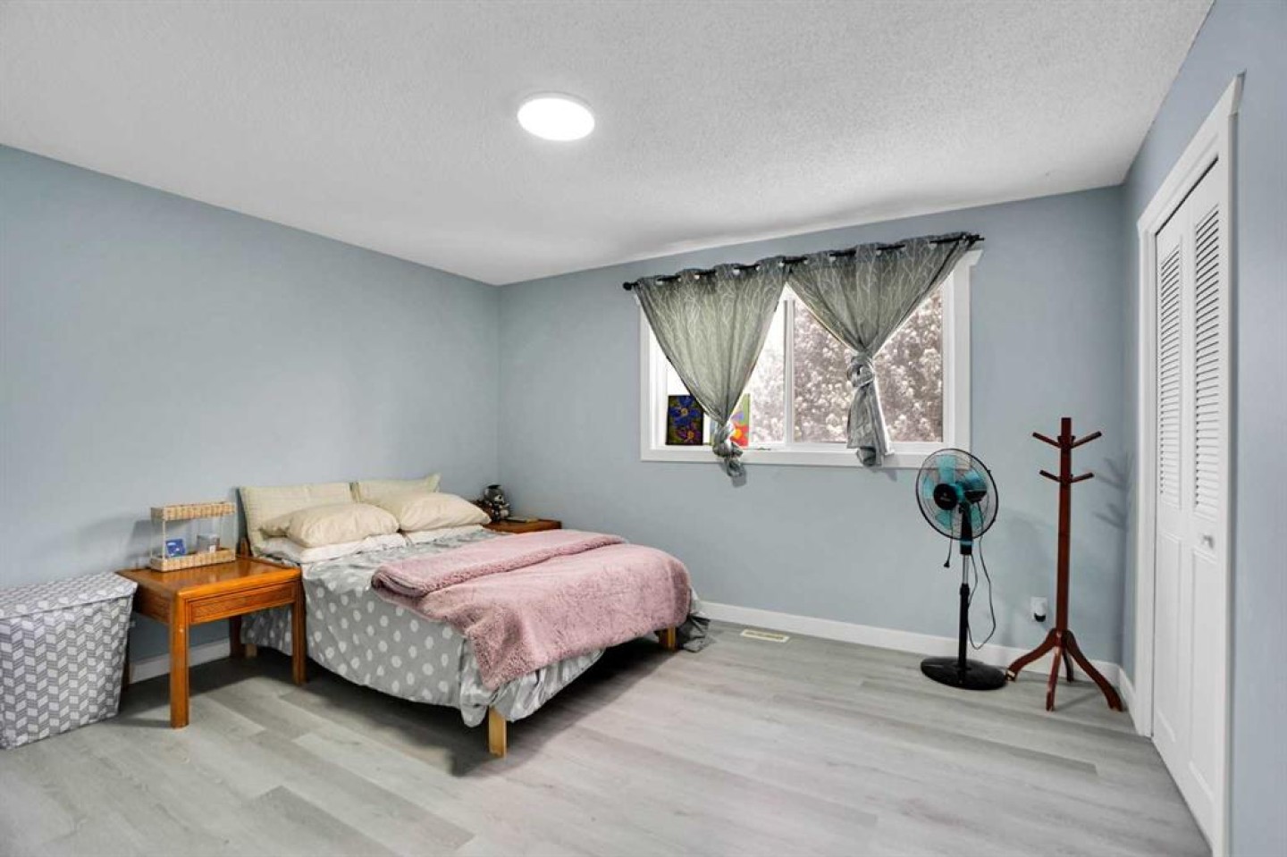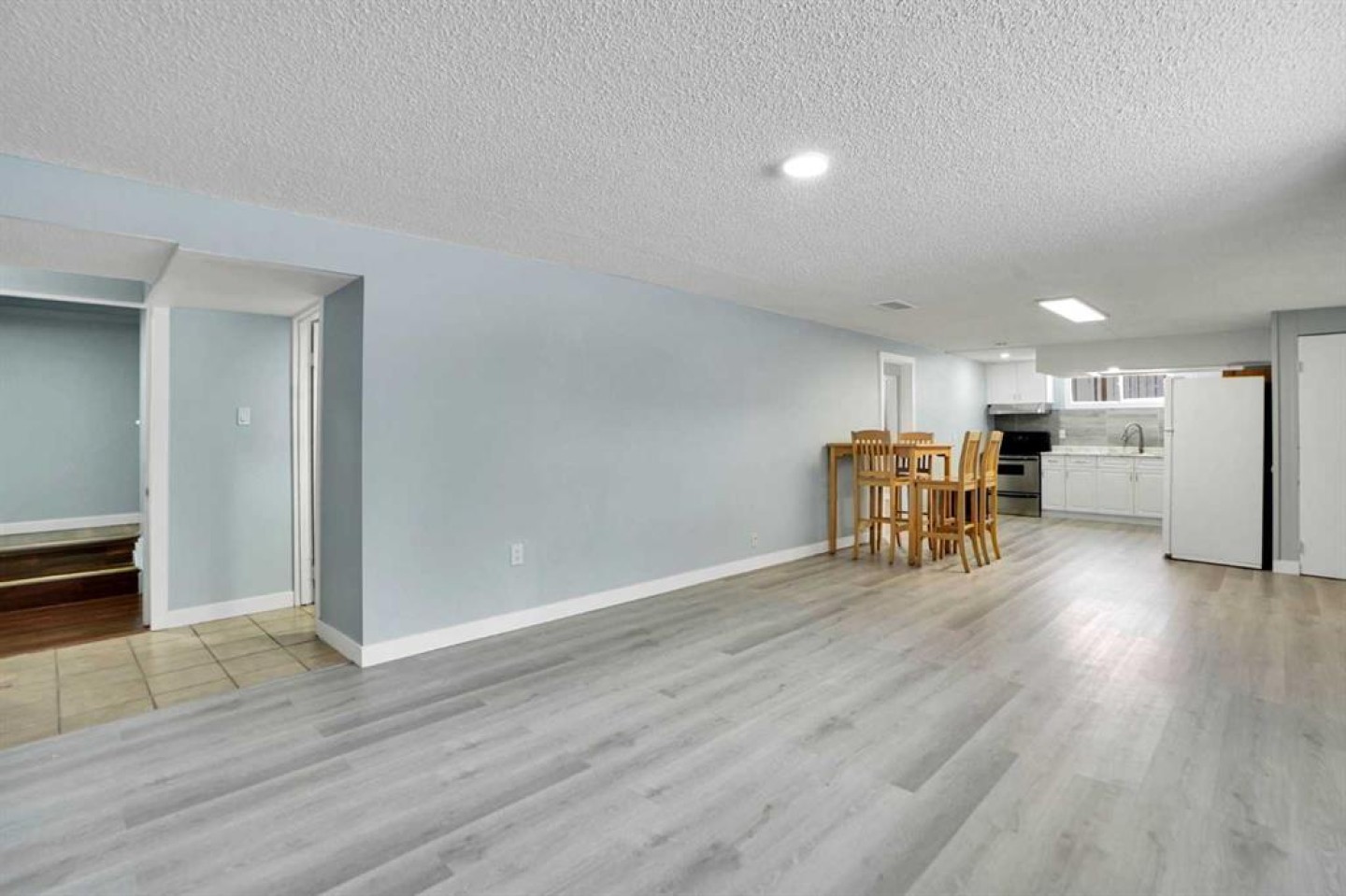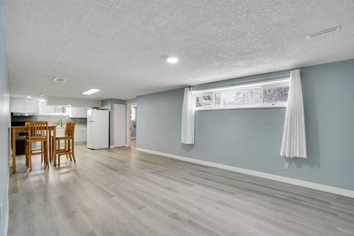 A separate entrance leads down to the basement, which includes a common laundry area located outside the basement suite (illegal). The basement has a huge family room with large windows, two sizeable bedrooms with new big windows, a kitchen, and a full bath (both renovated). Fresh paint has been applied to both the main floor and the basement. New vinyl plank floorings are also on both levels.