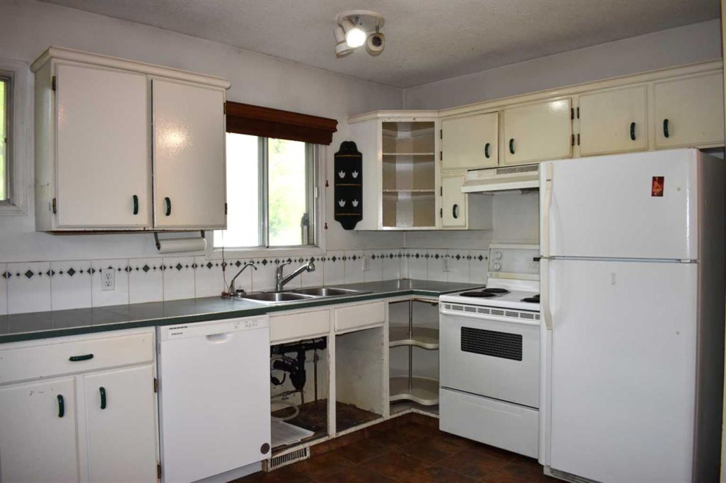 Dishwasher, Dryer, Electric Stove, Refrigerator, Washer, Window Coverings