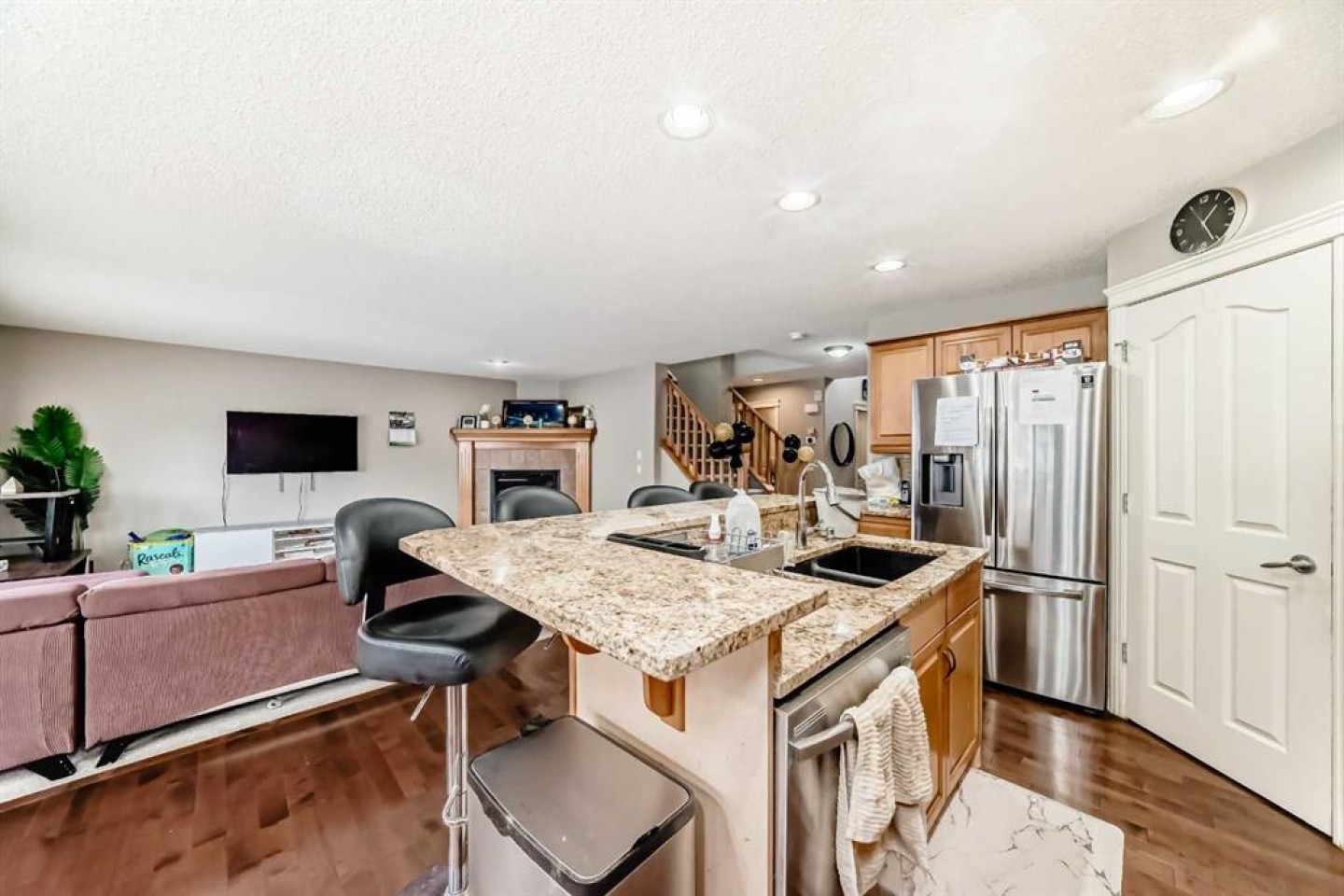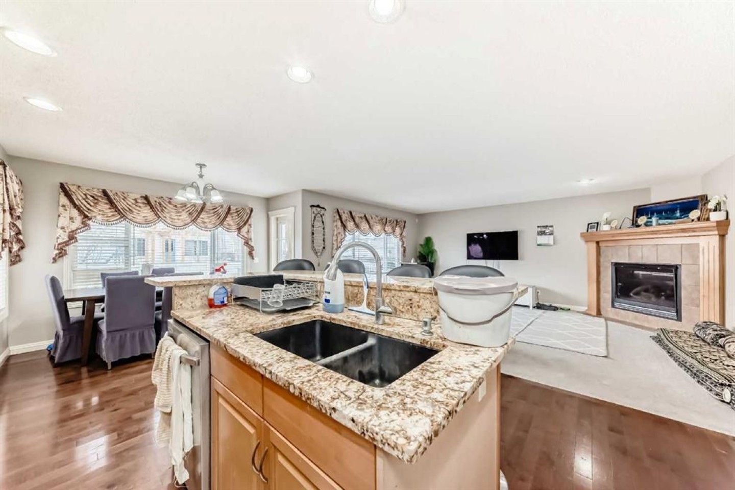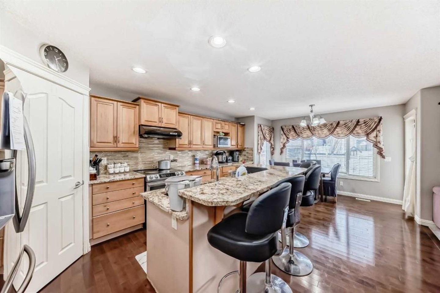 This stunning two-storey Jayman-built family home offers over 3,000 square feet of fully developed living space and sits on a large, flat lot in a perfect location. The main floor is bright and welcoming, featuring a spacious living room, a large family room with a cozy fireplace, and a beautiful kitchen with granite countertops, warm cabinetry, a large island, and a sunny nook. A mudroom with built-in cabinets and main-floor laundry adds everyday convenience, all thoughtfully laid out with hardwood flooring throughout.