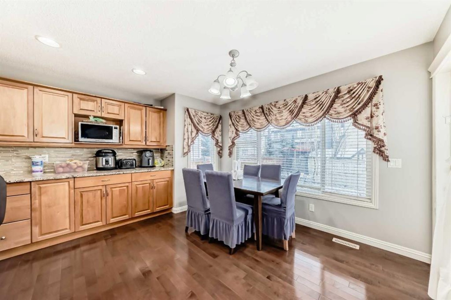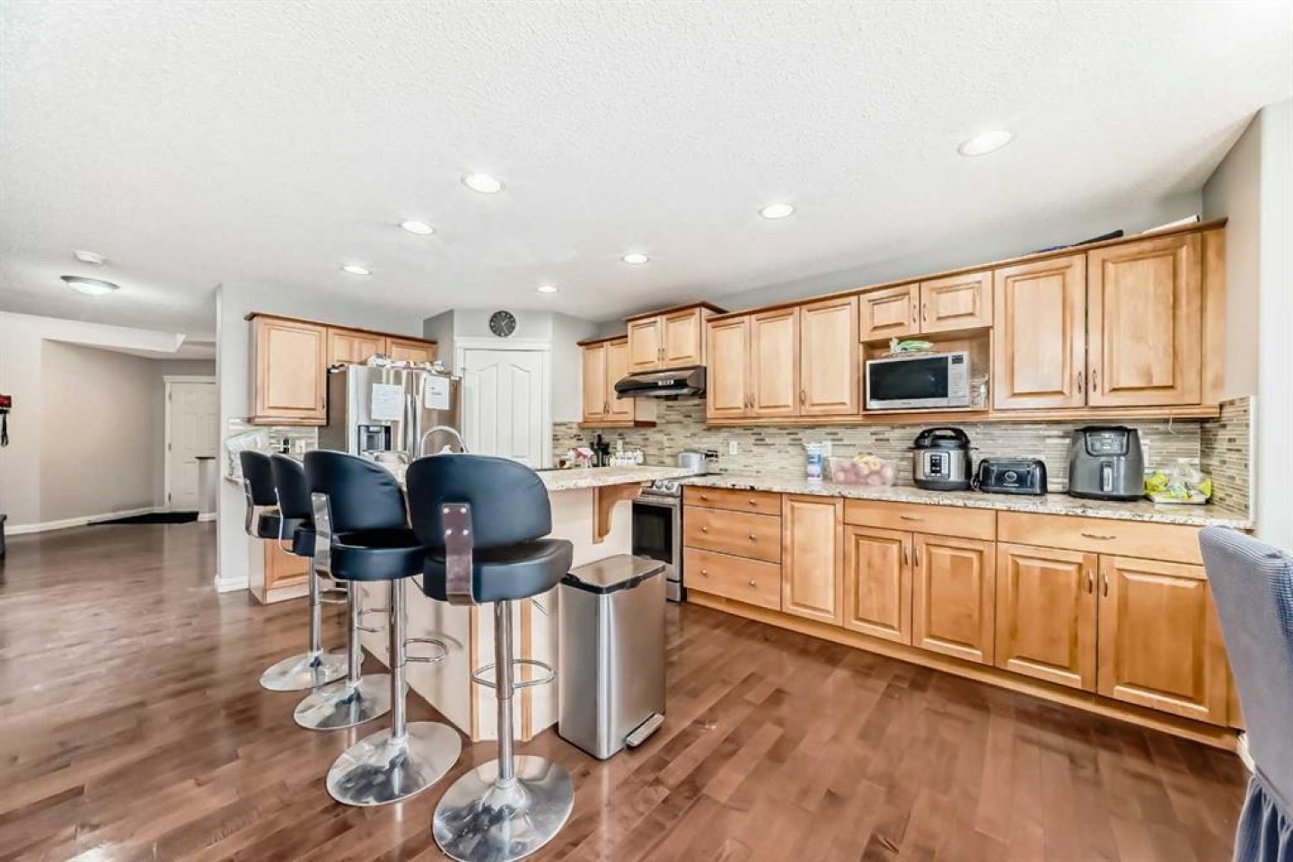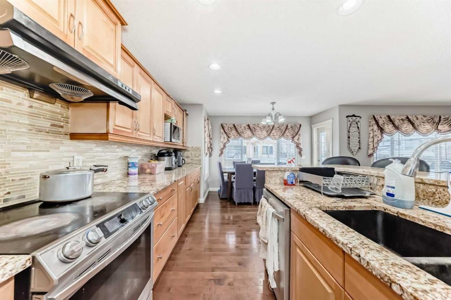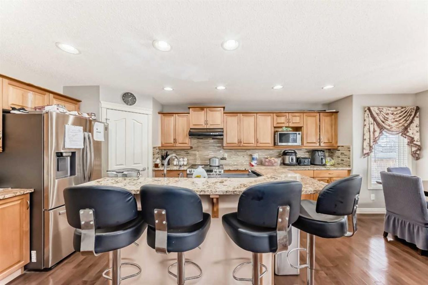 This stunning two-storey Jayman-built family home offers over 3,000 square feet of fully developed living space and sits on a large, flat lot in a perfect location. The main floor is bright and welcoming, featuring a spacious living room, a large family room with a cozy fireplace, and a beautiful kitchen with granite countertops, warm cabinetry, a large island, and a sunny nook. A mudroom with built-in cabinets and main-floor laundry adds everyday convenience, all thoughtfully laid out with hardwood flooring throughout.