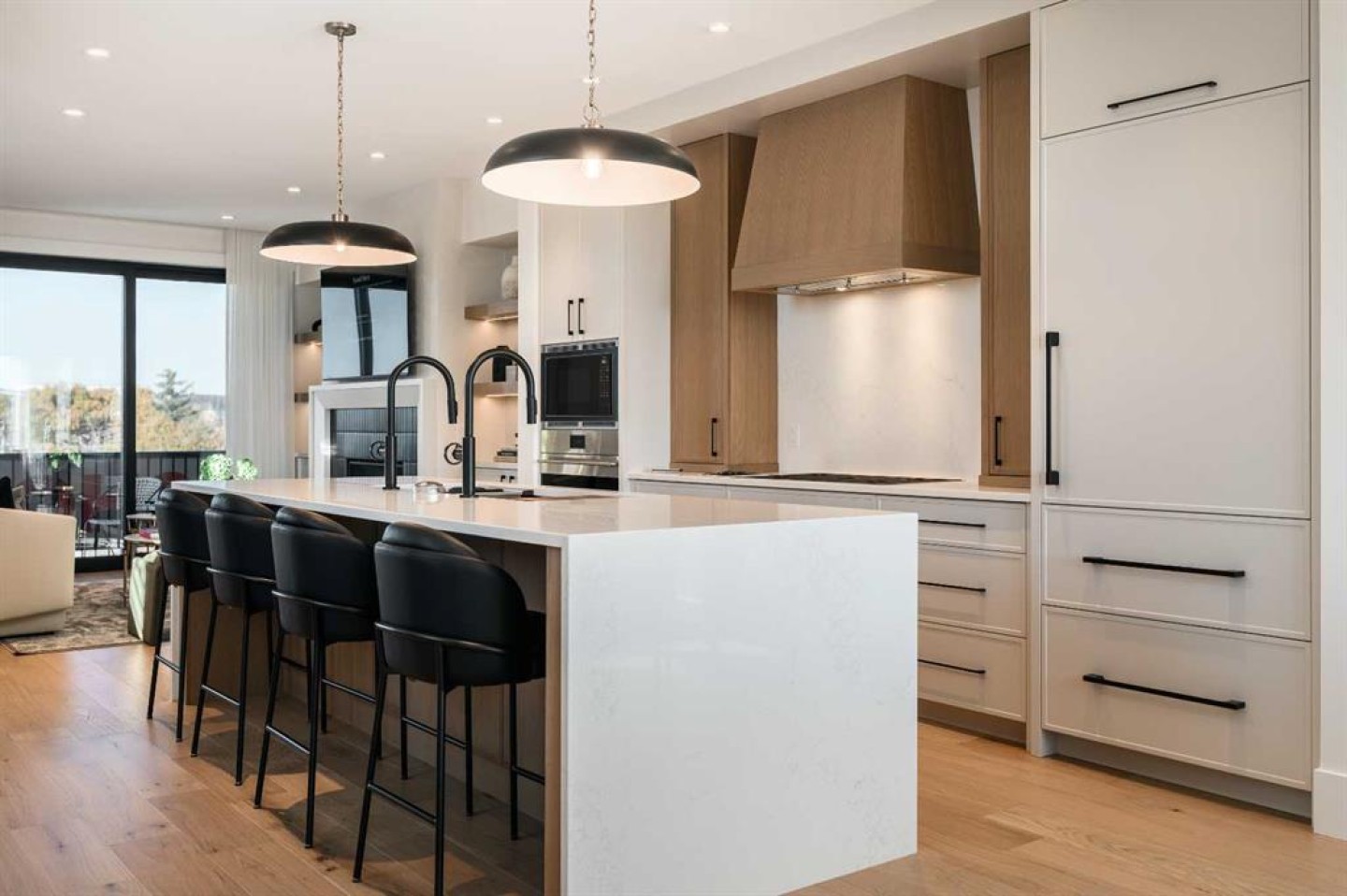 Nestled in the heart of Seventeen Hundred at Aspen Estates, this luxurious townhome with The Dalton floorplan (a design finalist with the 2025 BILD Calgary Awards) has been carefully crafted by RareBuilt Homes & offers over 2,700 sq ft of refined living space, complete with 3 bedrooms, amazing mountain views and exceptional design throughout. The airy main level with lofty 9’ ceilings, showcases luxury vinyl plank flooring, and expansive high end European triple glazed tilt & turn windows that flood the home with natural light. A spacious great room centers around a striking feature fireplace and opens to a large balcony with a louvered roof—perfect for year round enjoyment. A dedicated office space provides an ideal setting for work from home days. The beautifully appointed kitchen features quartz countertops, a generous island with eating bar, full height custom cabinetry, a walk in pantry, and a premium appliance package. The dining area comfortably accommodates gatherings with family and friends. A stylish 2 piece powder room completes the main level. Upstairs, the second level hosts three well proportioned bedrooms, a 4 piece bath, and convenient laundry facilities. The serene primary retreat with soaring vaulted ceiling includes a spacious walk in closet and a private 5 piece ensuite with in floor heat, dual sinks, a freestanding soaker tub, and a separate shower. The lower level offers impressive versatility with a large flex room and direct access to a walk out patio—ideal for a media room, fitness area, or family space. This level also includes a mudroom connecting to the fully finished & painted oversized double attached garage that’s EV charger ready. Additional highlights include central air conditioning, six solar panels, and concrete demising walls for enhanced privacy and noise reduction. Set within an exclusive complex spanning nearly 9 acres—5.5 of which are dedicated to green space—this residence delivers an unparalleled standard of comfort, quality, and sophisticated living.