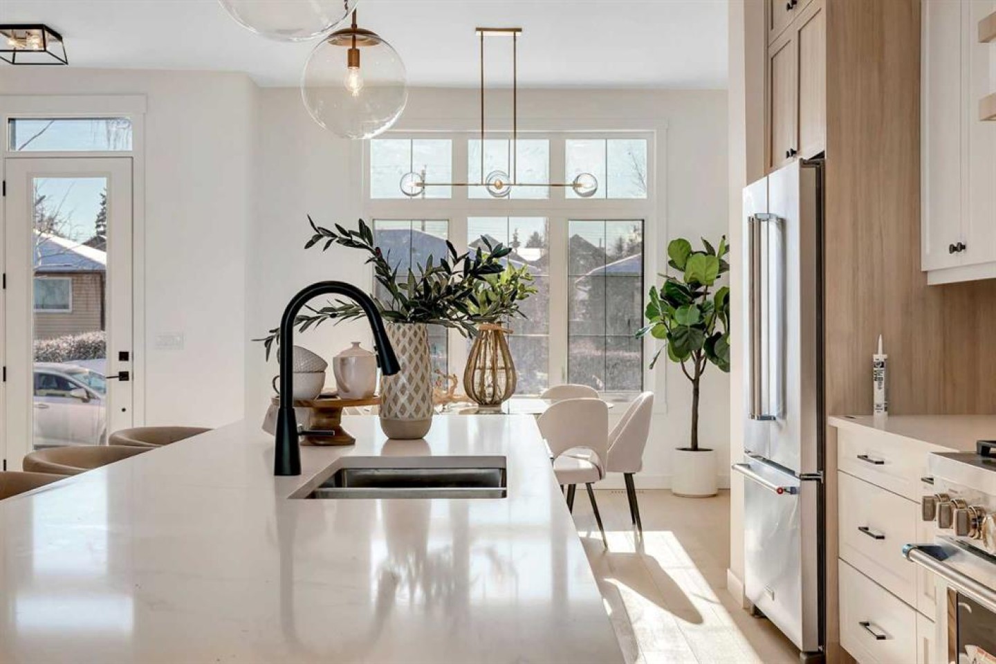 --OPEN HOUSE SATURDAY/SUNDAY 1-3PM---QUIET LOCATION- WALKOUT BASEMENT-Welcome to this beautiful, brand-new semi-detached home in the sought-after community of Richmond. Featuring a fully finished walk-up basement and a double detached garage, this home blends a functional layout with stylish, high-quality finishes that are both modern and comfortable. Step inside to a bright, open-concept main floor highlighted by wide-plank hardwood flooring throughout. The front foyer includes a practical built-in with vertical shiplap detailing, offering both charm and everyday organization. The kitchen is the true centerpiece of the home, anchored by a large waterfall quartz island with seating. Stainless steel appliances — including a gas range — pair perfectly with the two-tone cabinetry in warm wood and crisp white for a timeless, contemporary feel. The kitchen flows seamlessly into the dining area and living room, where wall-to-wall sliding glass doors flood the space with natural light and provide easy access to the backyard. A standout feature here is the gas fireplace, finished with beautiful dark floral tile that adds personality without overpowering the space. A convenient two-piece powder room completes the main level. Upstairs, you’ll find three generously sized bedrooms along with a dedicated upper-floor laundry room. The primary suite is a relaxing retreat, complete with a tray ceiling and a walk-in closet. The spa-inspired five-piece ensuite offers a dual vanity, glass-enclosed shower, and a freestanding soaker tub — perfect for unwinding at the end of the day. The fully finished lower level features a walk-up entrance that brings in additional light and provides direct backyard access. This level includes a spacious rec room with a built-in wet bar, wine storage, sink, and floating shelves — ideal for entertaining. A fourth bedroom and a full four-piece bathroom make this space perfect for guests, a roommate, or older children wanting more privacy. Situated on a quiet street, this home offers an unbeatable location close to everything Killarney has to offer. You’re within walking distance to Marda Loop, and the shops and restaurants. This is an excellent opportunity to own a move-in-ready home in one of Calgary’s most desirable inner-city neighbourhoods.- ASK ABOUT OUR UPGRADE OPTIONS- ATTACHED UNIT ALSO AVAILABLE.