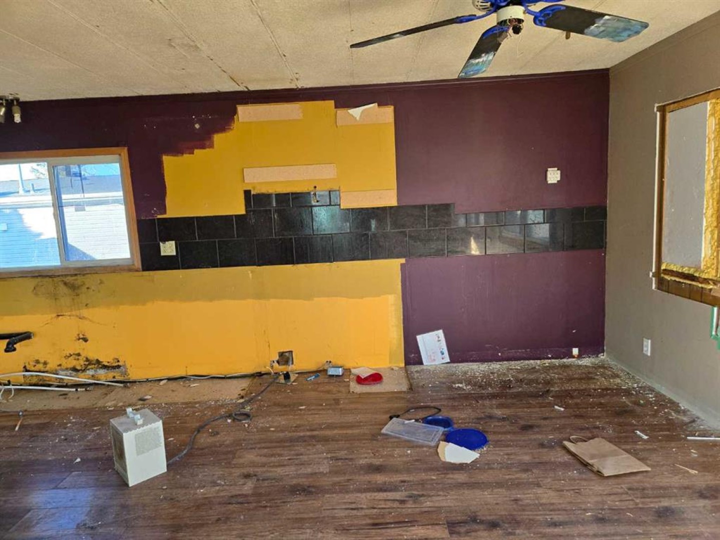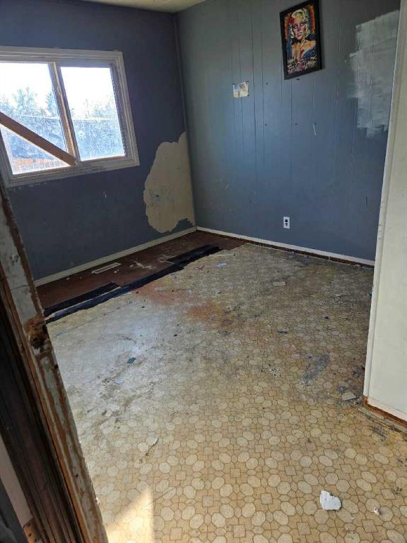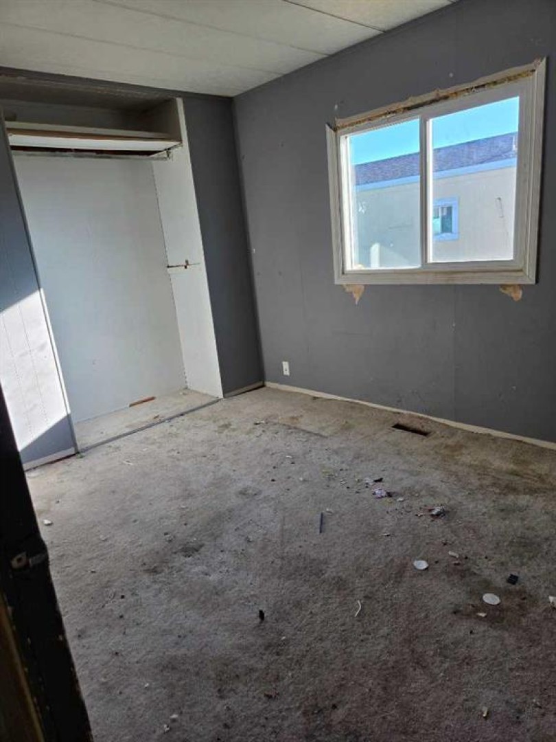 High River Village is a quiet, family friendly park with generous lots in NE High River. This is a 3 bedroom, 1 bath double wide home with the potential to be a nice family home. It does require an extensive amount of work to fulfill its potential. Kitchen cabinets have been removed, walls and floors need extensive reapir. No appliances on site. What it does have is vinyl windows, vinyl siding exterior and a metal roof. There are 2 sheds in the large yard. The seller is Cove Homes, the park management company. They offer a benefits package that may include financing at a great rates, or more. Beyond the purchase price, all sites in the park rent for $959 per month which includes water, sewer and garbage removal.