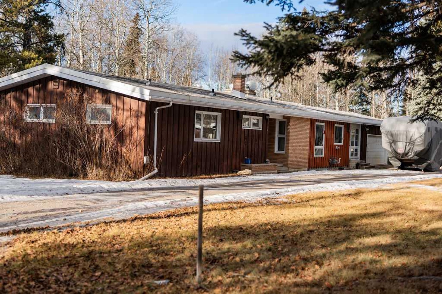 Surrounded by mature trees, the property offers a private setting while remaining just a short drive to local amenities and the highway.