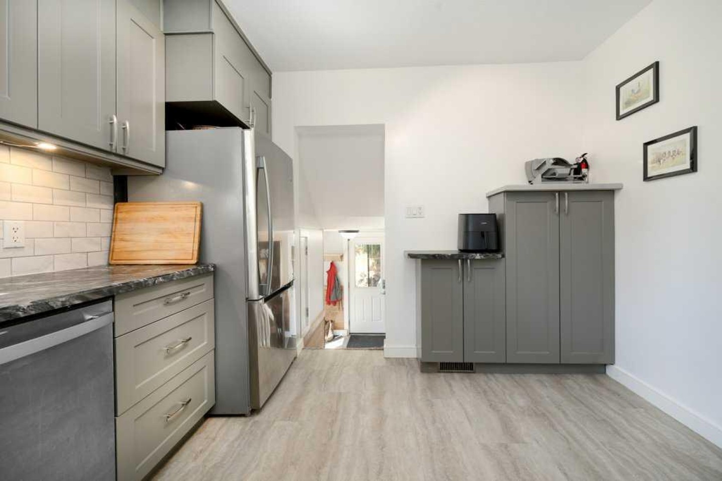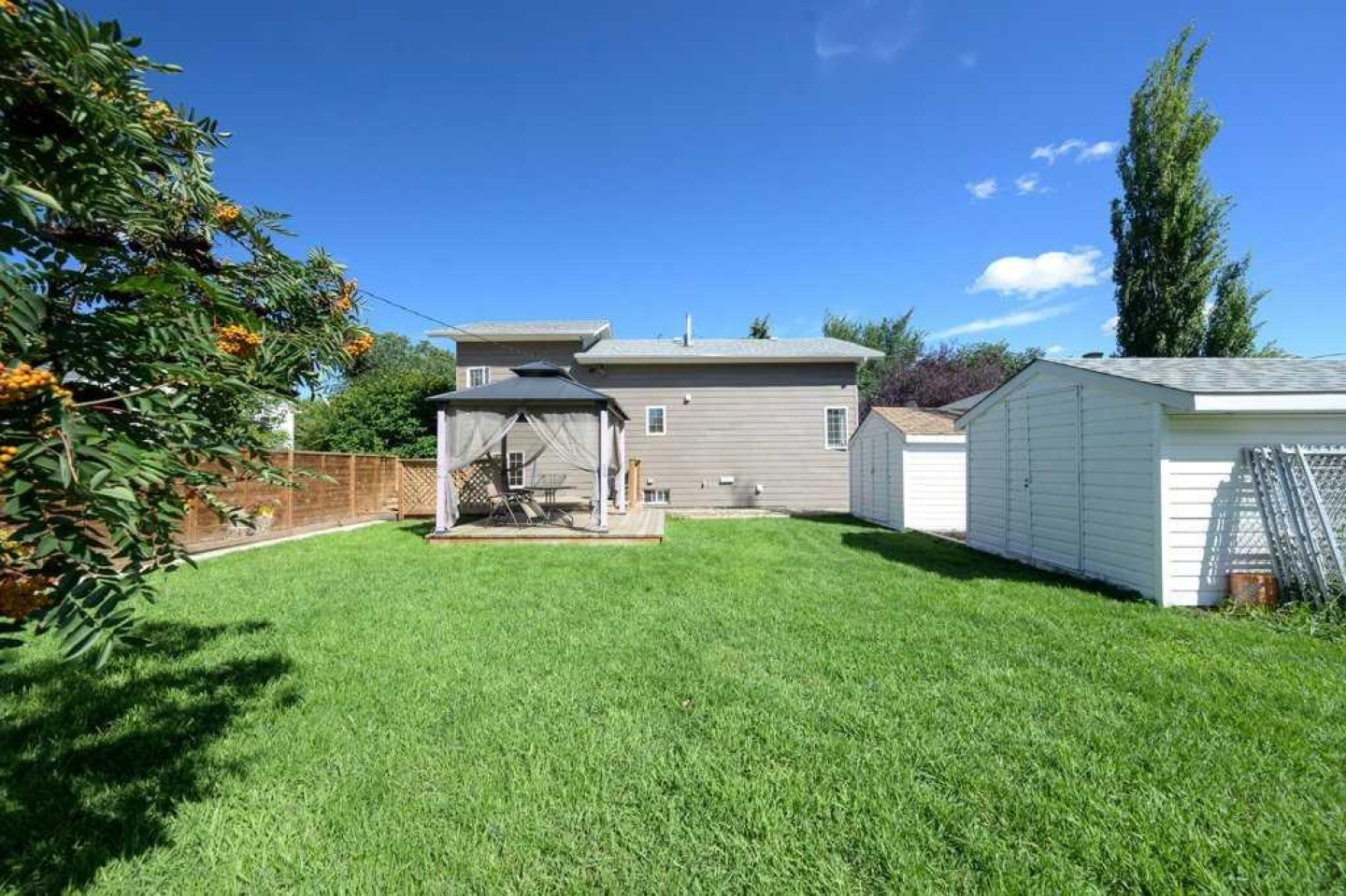 Extensively upgraded and sitting proudly on a massive 2.5-lot property in Downtown Lacombe, this stunning 4-level split offers the perfect blend of modern style and the charm of a mature neighbourhood. Completely transformed from its original 1950s character into a show-stopping contemporary home, it delivers both space and sophistication. Exterior enhancements include new siding with decorative stone, front and back decks, updated sidewalks and driveway, a newer garage, fresh gravel for the parking pad and around the garage, lush sod, and a beautiful garden. Inside, the thoughtful renovations are a dream come true, with newer flooring, tile, fresh paint, accent walls in the family room, crown moulding in the living and dining rooms, and updated bathrooms throughout. From the compact yet functional kitchen with all appliances new in 2022, there are dining/entertainment options either 3 steps in the formal dining room, 6 steps down in the cozy family room with wood stove, and of course,e on the warmer days on the outside deck. The new windows shower the home with natural light. Major system updates include shingles (2015), furnace (2017), hot water tank (2019), PEX plumbing (2023), and fencing (2023). Perfect for families, empty nesters, or anyone seeking a turnkey home, this property is ideally located just steps from the Gary Moe Auto Group Sportsplex, multiple schools, Cranna Lake and its scenic trails, and the vibrant downtown core filled with shops and restaurants. The oversized double garage awaits your finishing touches, and there’s ample room to park an RV either inside or outside the fenced yard. Two large wooden sheds complete the funtionallity of this large west facing backyard. This is truly a home where comfort, style, and location meet—don’t miss your chance to make it yours!