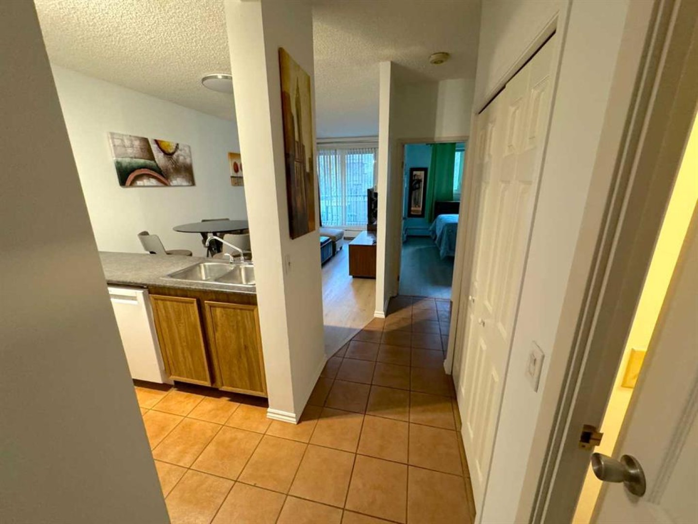 Incredible value in the heart of Eau Claire. Discover an exceptional opportunity to own a bright and stylish 1 bedroom 1 bathroom condo in the prestigious Princes Crossing, a well maintained concrete building in one of downtown Calgary’s most desirable neighbourhoods. This south facing unit features a functional open concept layout filled with natural light. The custom built kitchen is thoughtfully designed for the home chef and opens seamlessly into the spacious living area, where patio doors lead to a unique circular balcony offering approximately 180 degree views and an ideal space to relax or entertain. The renovated bathroom showcases bright cabinetry, a large mirror, and a clean modern finish. A generous in unit storage room, large enough to accommodate a bicycle and more, adds everyday convenience and organization. Prince's Crossing offers an impressive range of amenities including a fully equipped fitness centre with steam room, lockers and showers, concierge service, meeting room, day care located within the building, on site convenience store, and a heated underground parking stall. Enjoy the unbeatable location just steps from the Bow River pathways, parks, bikeways, grocery stores, transit, and some of Calgary’s best dining and cafes, all while being tucked away on a quiet, tree lined street in Eau Claire. Pet might be allowed with board approval. This bright south facing unit is an outstanding option for first time buyers or investors seeking value, location, and lifestyle. An unbelievable deal in the downtown core.