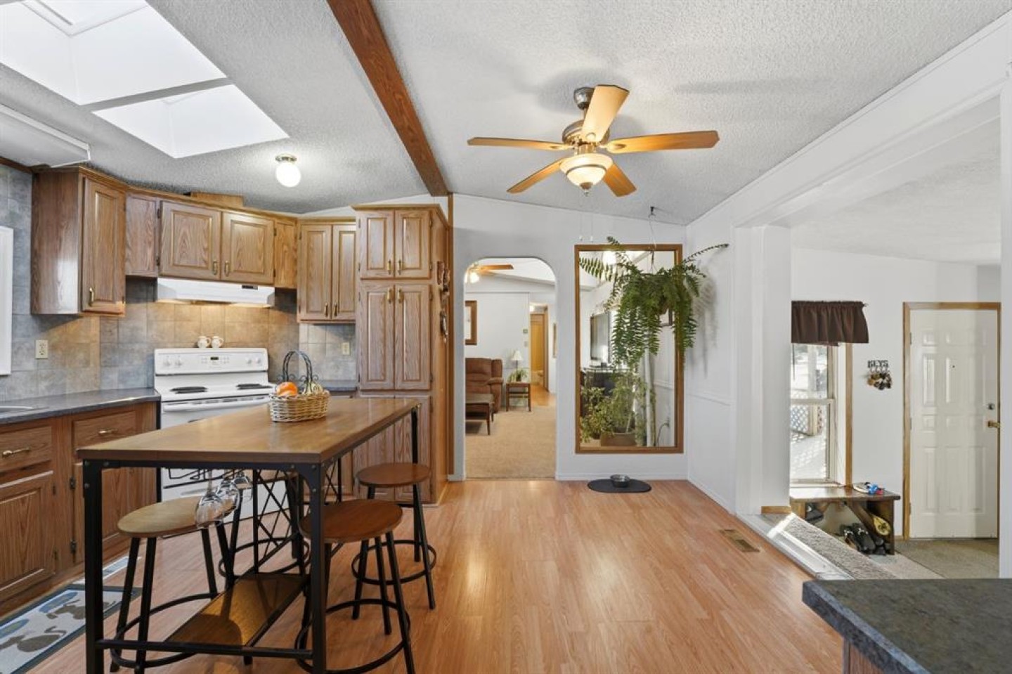 Welcome to Willow Hills Estates! Situated on its own lot on the edge of sundry in beautiful Mountain View County this 1992 manufactured home offer space comfort and exceptional value. With a low monthly fee of 131 covering water garbage and common area maintenance this is an affordable opportunity to own a peaceful wealth kept community. This home features a four bedroom plus den highlighted by a large addition that provides extra living space a wood-burning stove, perfect for families or those who need room to spread out the layout includes a main bathroom a primary bedroom with its own en suite offering both functionality and privacy. Step outside and enjoy beautiful west facing covered patio ideal for sunset evenings and relaxing outdoors the massive lot provides plenty of space complemented by ample exterior storage for all your needs. Meticulously maintained and clearly well care for, this property is an excellent condition and offers immediate possession move in and start enjoying it right away