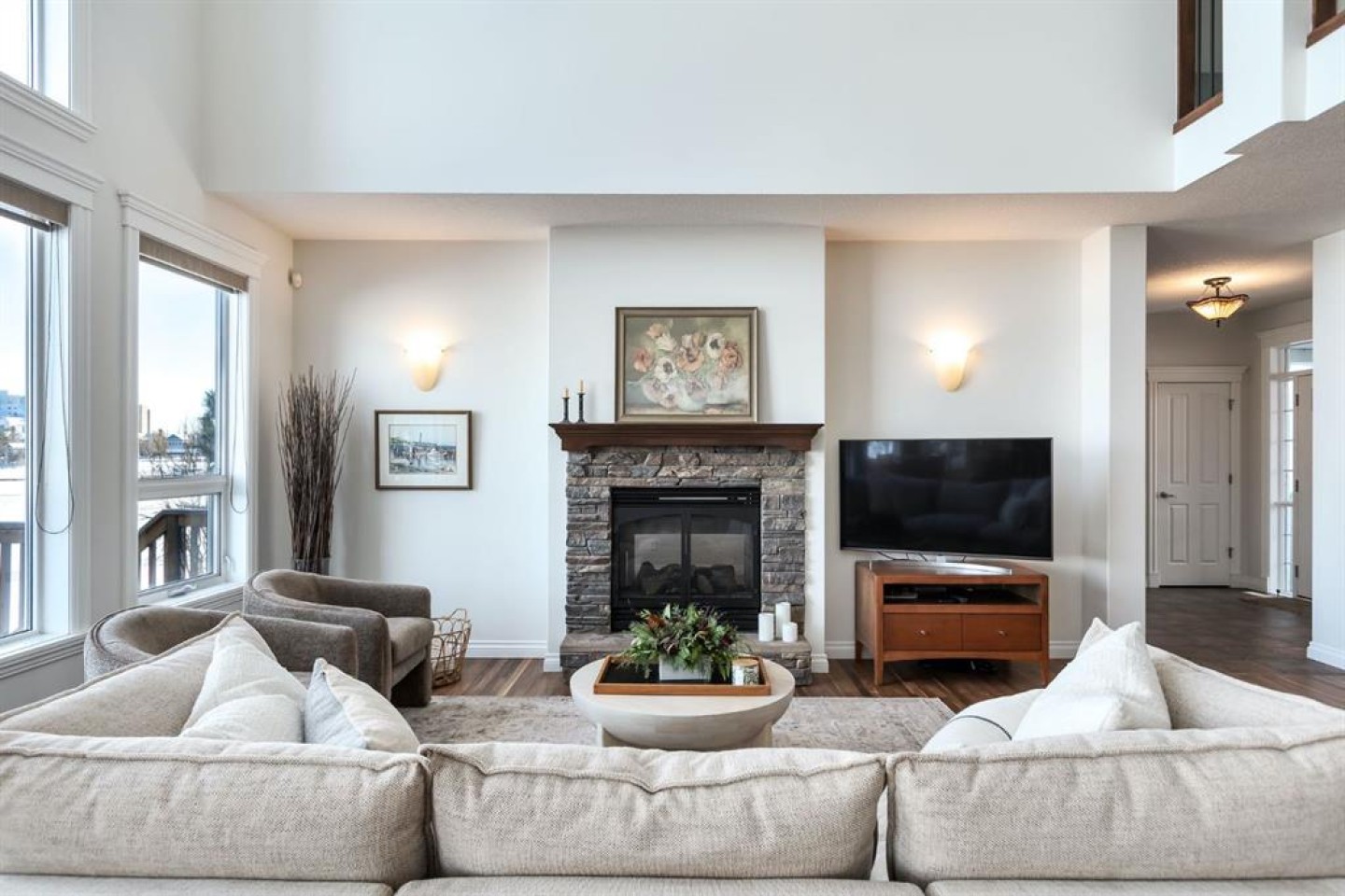 Welcome to the rarest of opportunities, a lakefront property that embodies family, legacy, and the unmatched lifestyle that comes with owning on the LAKE! This meticulously maintained executive residence offers over 4698 sq of living space on an oversized pie shaped lot with a private dock and professionally landscaped grounds that frame sweeping water views. While some elements of the home offer classic styling ready for your personal touch, the timeless architecture and the one of a kind location make this a beautiful and truly worthwhile investment. Recent area sales confirm that renovated homes on lake lots have achieved premium prices, underscoring the enduring value of this incredible property & location. The open concept main floor is designed for connection & comfort, featuring soaring 17 foot ceilings, newly refinished walnut hardwood floors and a sun filled great room with a soothing two way fireplace. The chef inspired kitchen offers floor to ceiling maple cabinetry, granite counters, travertine backsplash, stainless steel appliances including gas cooktop, built in microwave and a new professional fridge. A massive island makes entertaining effortless while a formal dining room, breakfast nook, and walk through pantry add convenience and style. A spacious mudroom with custom lockers and an oversized triple garage complete the practical needs of a busy family. A dedicated office with everlasting lake views completes the level, one of two flexible home office spaces that enhance modern living. Upstairs, the primary retreat provides a serene escape with a cozy sitting area, breathtaking water views & a spa like ensuite that includes dual vanities, soaker tub, walk in closet w/built-ins and a rejuvenating steam shower. Two additional bedrooms, a full bathroom, upper laundry room, a flex room that can also be used as a fifth bedroom/office and a large bonus room with custom railing overlooks the lake ! The fully finished walk-out basement extends the living experience with a theatre + games area featuring a projector & surround sound, a large fourth bedroom w/ lake view, a full bathroom and a flex space w/direct access to the backyard. Step outside into your own private oasis with a large upper deck with gas line, a hot tub, UG irrigation and pristine landscaping that leads to your dock where year round lake activities await. Notable upgrades include heated basement floors, dual air conditioning, newer mechanicals, a Kinetico water system, central vacuum and fresh paint. Energy efficiency and thoughtful design are paired with timeless architecture to create a forever home that will stand the test of time! Unmatched community amenities with a vibrant lake and clubhouse, walking paths, schools, Health Campus, Seton shops, and beautiful parks just steps away. This property is the ultimate combination of beauty, comfort, and long term value. A forever home designed for your family and memories on the water. Do not miss it!