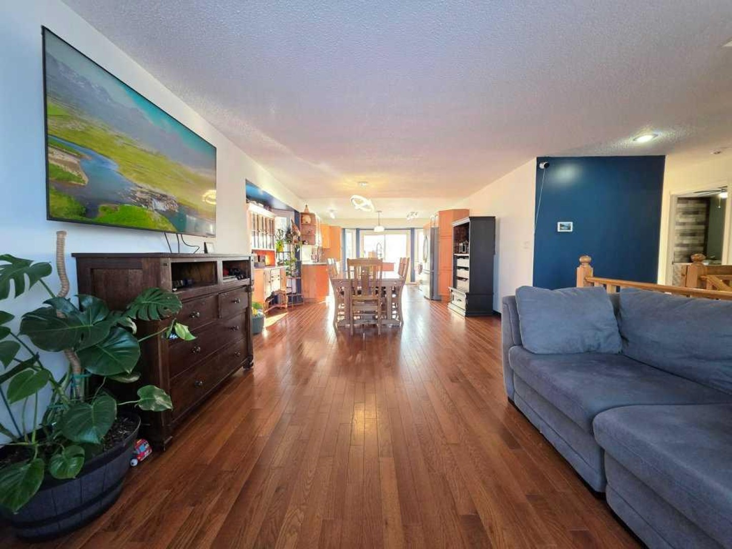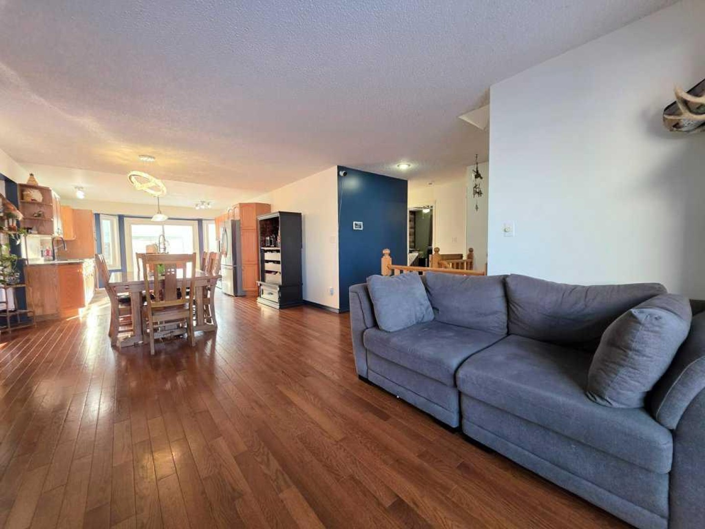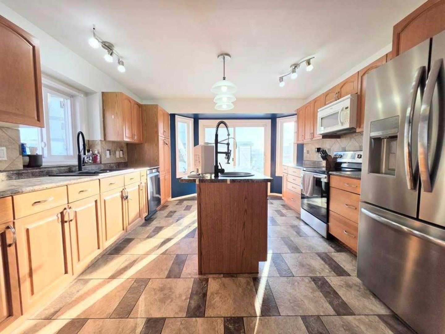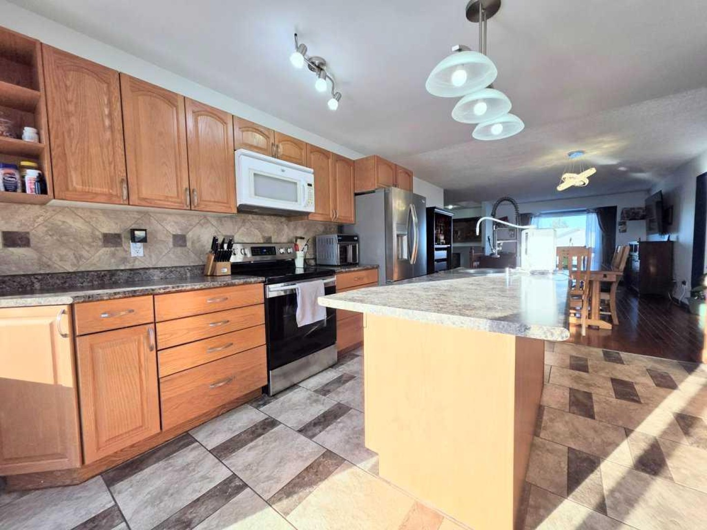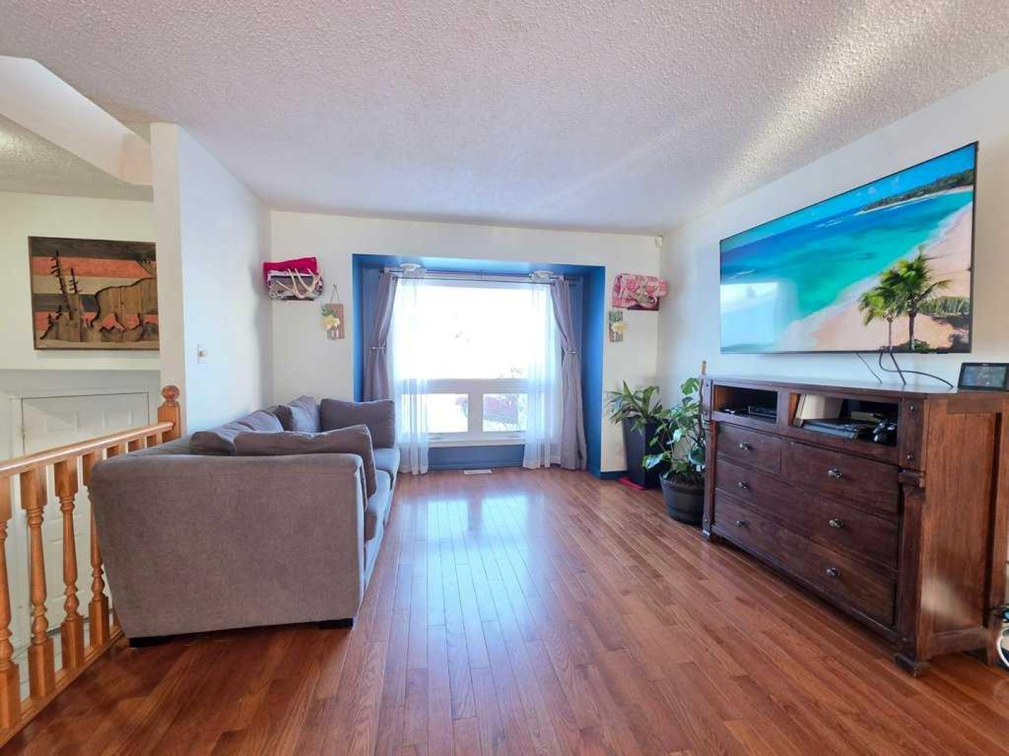 Welcome to this spacious and well-maintained home tucked away on a quiet cul-de-sac. The bright, open-concept upper level features a large kitchen with abundant storage and a thoughtfully designed layout filled with natural light. New windows and doors installed in 2023 enhance both energy efficiency and comfort throughout the home. The fully fenced, recently landscaped backyard is ideal for relaxing or entertaining, complete with apple, rose, and chum (cherry plum hybrid) trees. Downstairs, the finished basement provides a large, versatile entertainment room—great for movie nights, social gatherings, or a home fitness area. The home features larger bedrooms, an attached heated garage, and a large parking pad. Additional highlights include a newer furnace in both the house and garage (replaced within the last 5 years), Telus home security with video cameras, keyless entry, and a smart garage door opener. Ideally located within walking distance to St. Mary School, the pool, and the multi-recreation centre, this home combines space, comfort, in a great location.