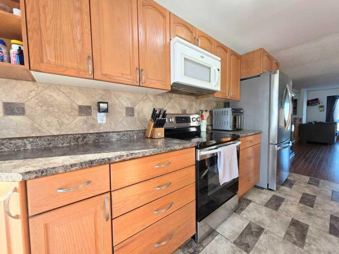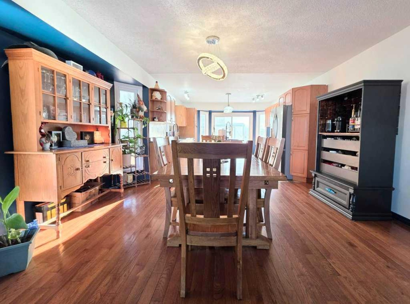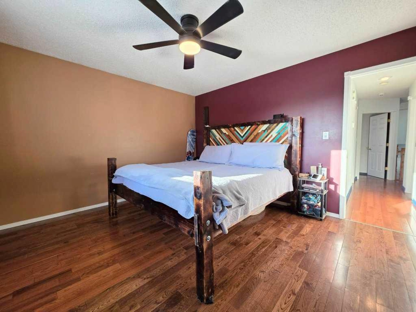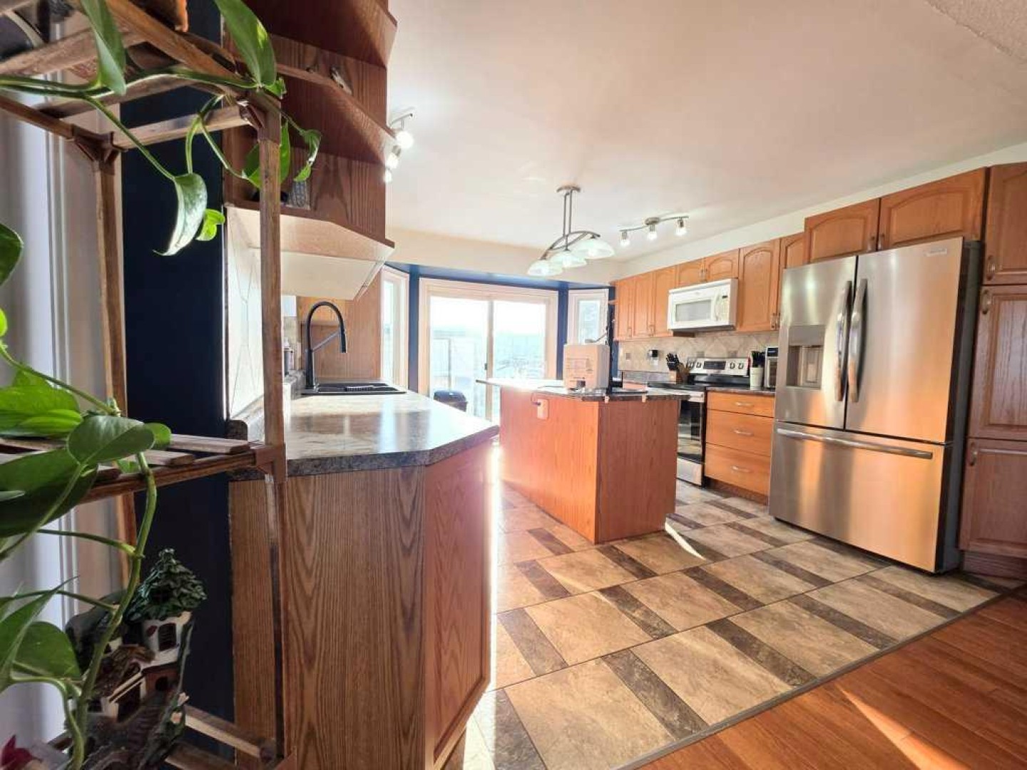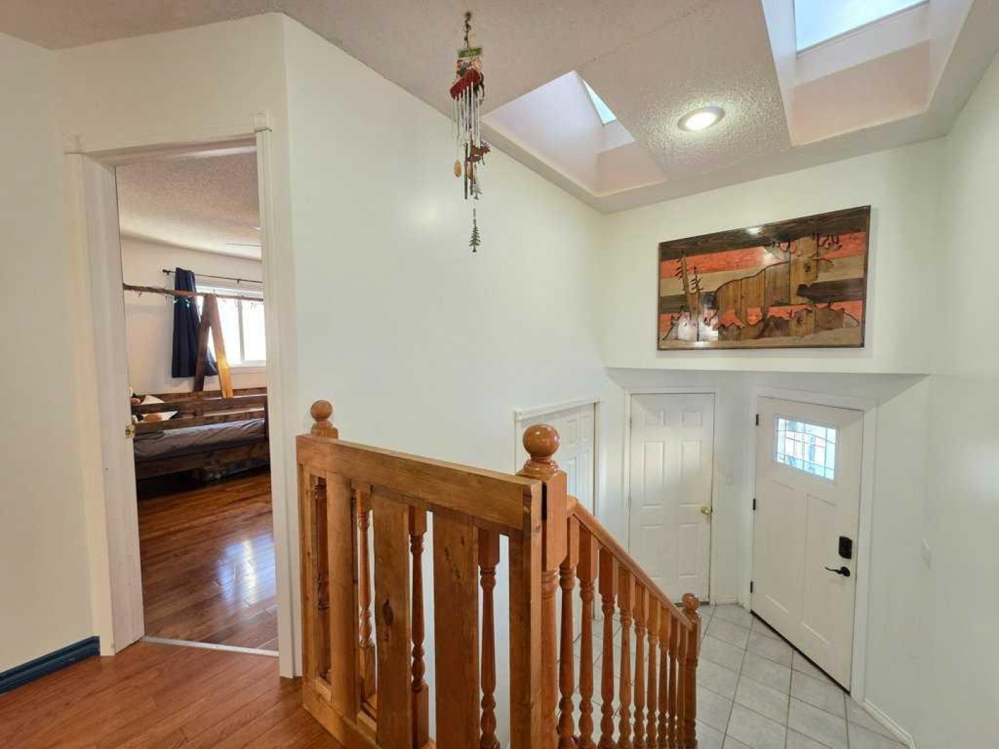 Welcome to this spacious and well-maintained home tucked away on a quiet cul-de-sac. The bright, open-concept upper level features a large kitchen with abundant storage and a thoughtfully designed layout filled with natural light. New windows and doors installed in 2023 enhance both energy efficiency and comfort throughout the home. The fully fenced, recently landscaped backyard is ideal for relaxing or entertaining, complete with apple, rose, and chum (cherry plum hybrid) trees. Downstairs, the finished basement provides a large, versatile entertainment room—great for movie nights, social gatherings, or a home fitness area. The home features larger bedrooms, an attached heated garage, and a large parking pad. Additional highlights include a newer furnace in both the house and garage (replaced within the last 5 years), Telus home security with video cameras, keyless entry, and a smart garage door opener. Ideally located within walking distance to St. Mary School, the pool, and the multi-recreation centre, this home combines space, comfort, in a great location.
