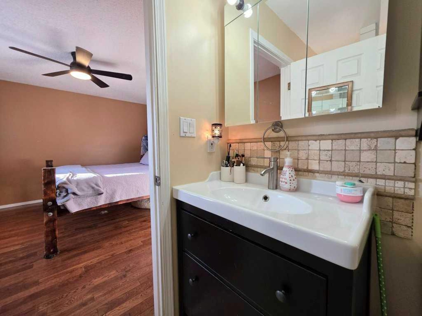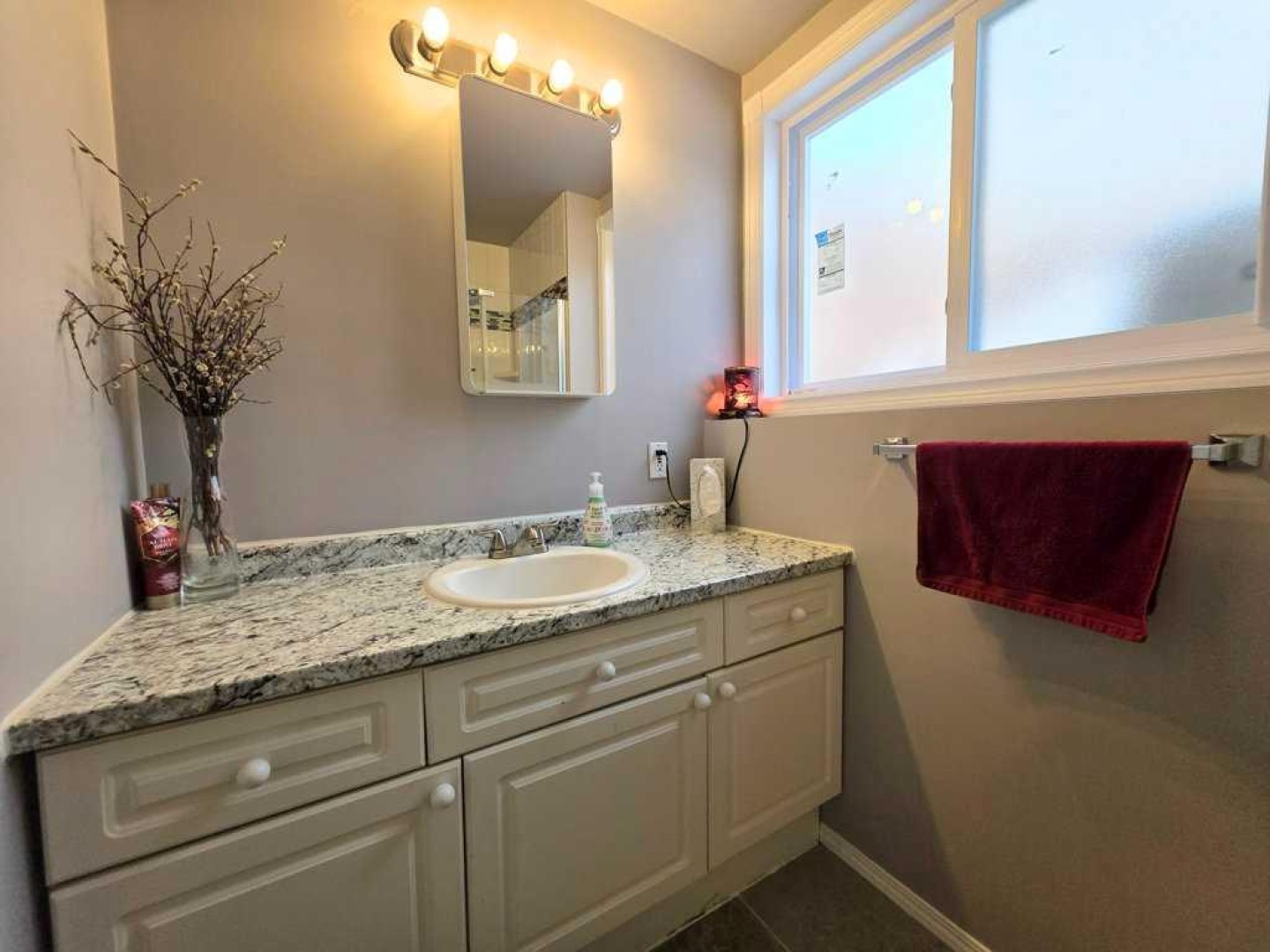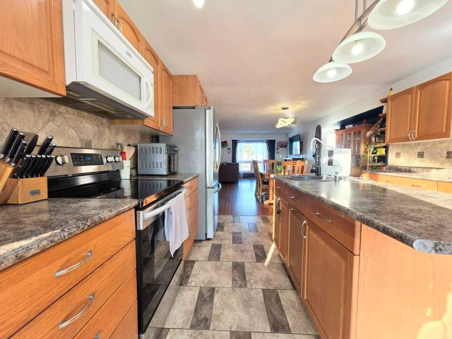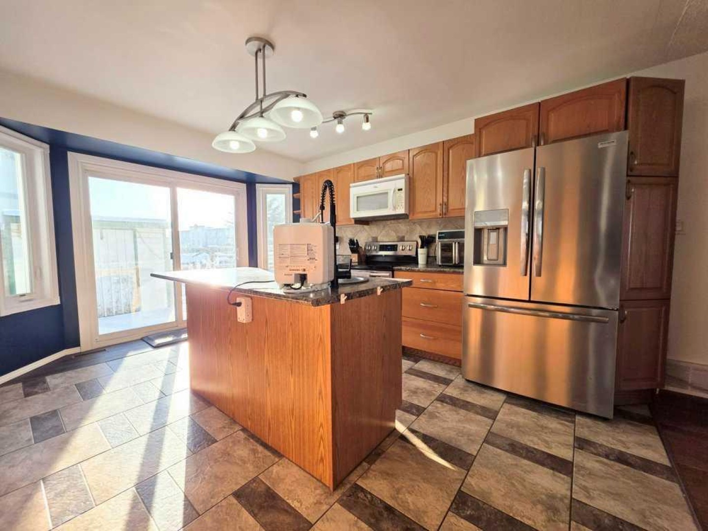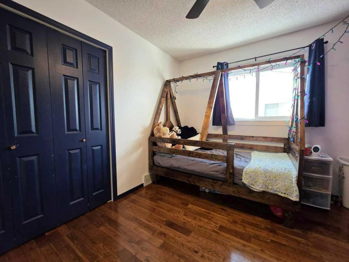 Welcome to this spacious and well-maintained home tucked away on a quiet cul-de-sac. The bright, open-concept upper level features a large kitchen with abundant storage and a thoughtfully designed layout filled with natural light. New windows and doors installed in 2023 enhance both energy efficiency and comfort throughout the home. The fully fenced, recently landscaped backyard is ideal for relaxing or entertaining, complete with apple, rose, and chum (cherry plum hybrid) trees. Downstairs, the finished basement provides a large, versatile entertainment room—great for movie nights, social gatherings, or a home fitness area. The home features larger bedrooms, an attached heated garage, and a large parking pad. Additional highlights include a newer furnace in both the house and garage (replaced within the last 5 years), Telus home security with video cameras, keyless entry, and a smart garage door opener. Ideally located within walking distance to St. Mary School, the pool, and the multi-recreation centre, this home combines space, comfort, in a great location.