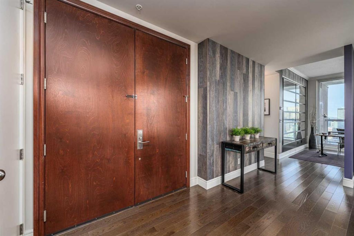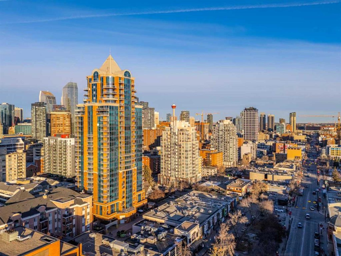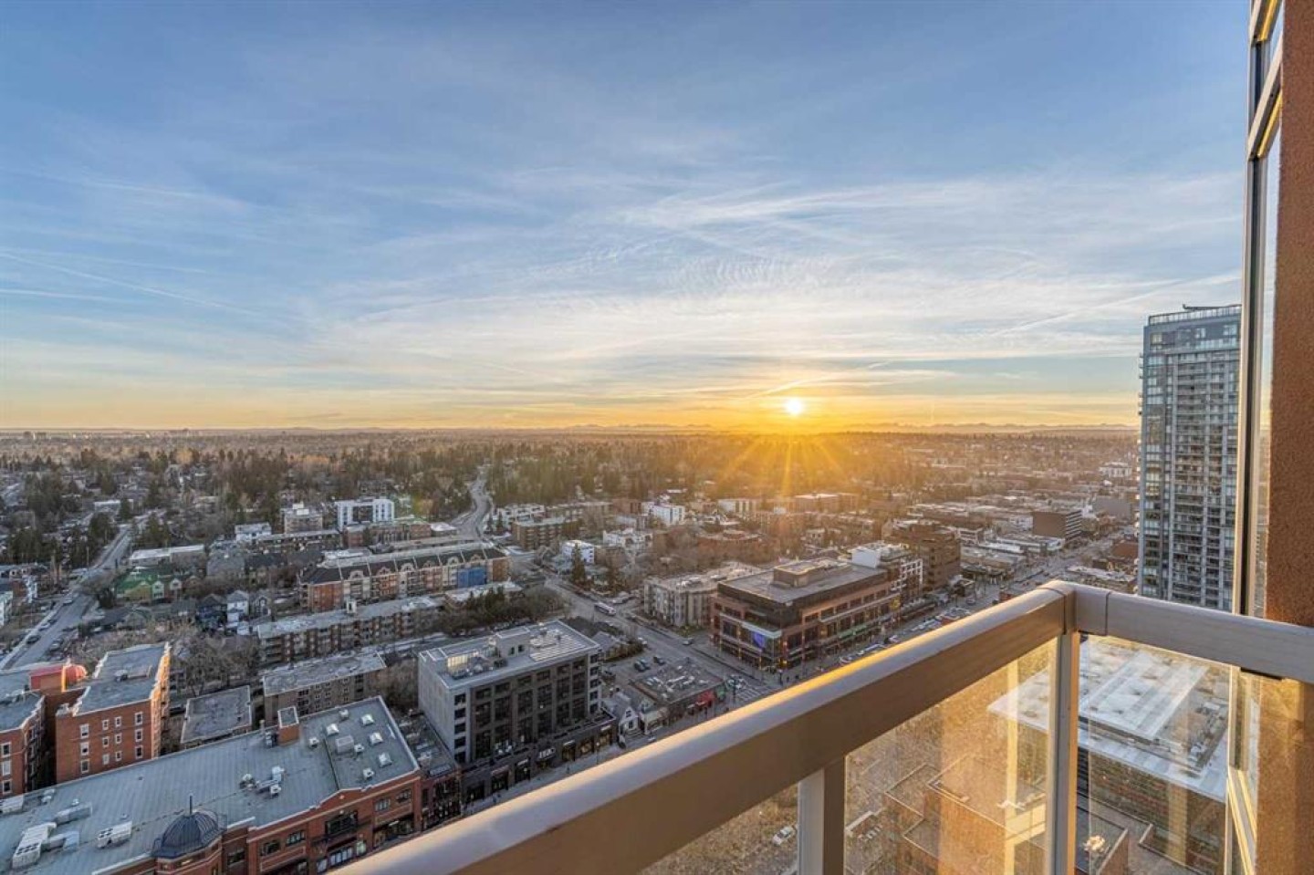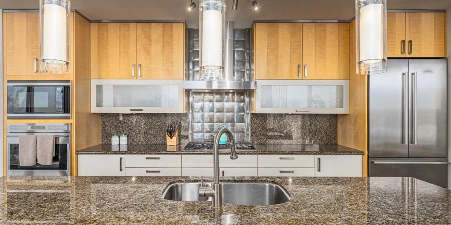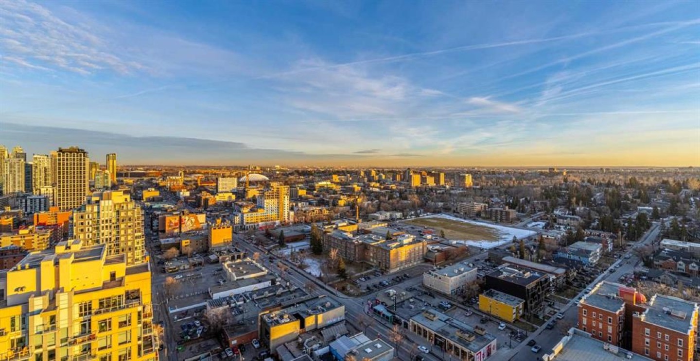 A rare opportunity in the Beltline offering unobstructed, 180-degree sweeping views from four private balconies. Privately positioned on a floor shared with only one other residence, this 3-bedroom, 2,300 sq. ft. home combines expansive living spaces with exceptional quality. The primary suite exceeds an impressive 200 sq ft, featuring a luxurious five-piece ensuite and a generous walk-in closet. Two additional bedrooms, two full bathrooms, a powder room, and a den provide flexibility and comfort for family or guests. Constructed with quadruple-glazed windows, 8-inch concrete floors, and double-layered drywall, the home offers superior soundproofing, privacy, and comfort. Interior highlights include a gas fireplace framed by stunning city views, dual heating zones with air conditioning, Hunter Douglas automated window coverings, and a gourmet open-concept kitchen equipped with Wolf and Bosch appliances. The four private balconies provide uninterrupted views spanning from east to west, capturing both the downtown skyline and the mountains. Enjoy city events such as the Stampede fireworks right from your balcony. Included are two titled side-by-side P1 parking stalls conveniently located near the elevator, featuring upgraded EV chargers. Two storage lockers are also included, and the unit can be offered fully furnished. The Montana offers full concierge service and a level of construction and privacy that continues to set it apart. Ideally located in the heart of the Beltline—home to Calgary’s finest dining, culture, and entertainment—this residence defines elevated urban living.
