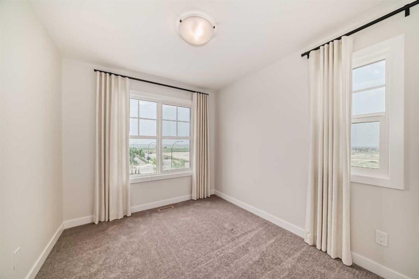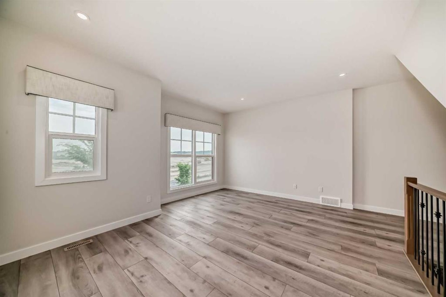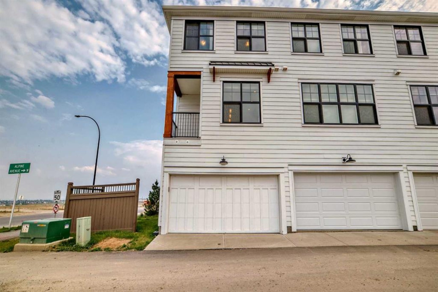 Offered, is a former Genesis show home - The "Alicia" model. The home is situated on an oversized corner lot, one of the largest available for this style of property, allowing for additional windows, enhanced natural light, and a clear advantage over interior units. Professional landscaping has already been completed, including trees, shrubs, and underground sprinklers, providing a seamless and low-maintenance transition for the new owner. Inside, you’ll appreciate the impressive modern layout and interior finishes/high-end features. Included, is a highly functional kitchen with a walk-in pantry including stainless steel appliances with the option for gas to both the kitchen and balcony, high end countertops, nine-foot ceilings, luxury vinyl plank flooring, and a conveniently located upper-floor laundry complete with washer and dryer. A unique and highly desirable feature of this home is the ground-level bedroom or flex space, making it ideal for a private home office, studio, or guest room—perfect for professionals seeking work-life balance without the daily commute. Additionally, the double attached rear garage features an upgraded carriage-style garage door and wall-mounted heaters, offering both comfort and added security A comprehensive list of upgrades is available for review, please ask your agent to view it. Alpine Park is a community that deserves a top spot on your home search journey. Located just off Stoney Trail in the SW quadrant of Calgary and near the new Taza shopping Development, this area reflects the bold and thoughtful planning vision of the developer, Dream. Contact your agent to book a private showing and explore this exceptional opportunity. Some photos have been virtually staged.