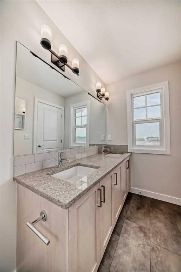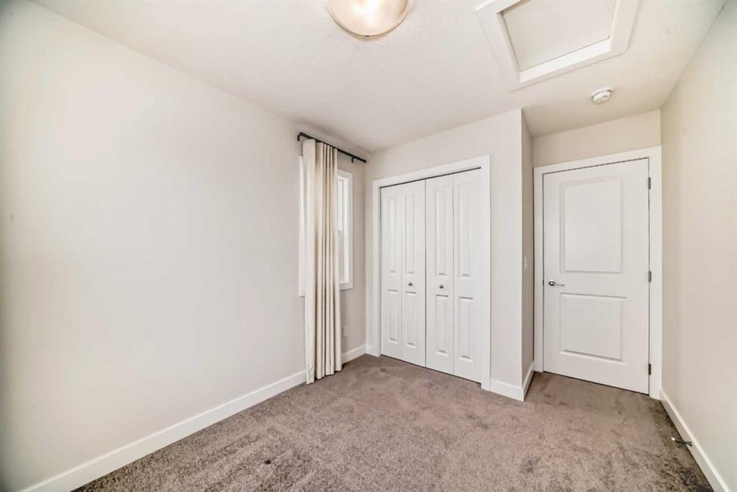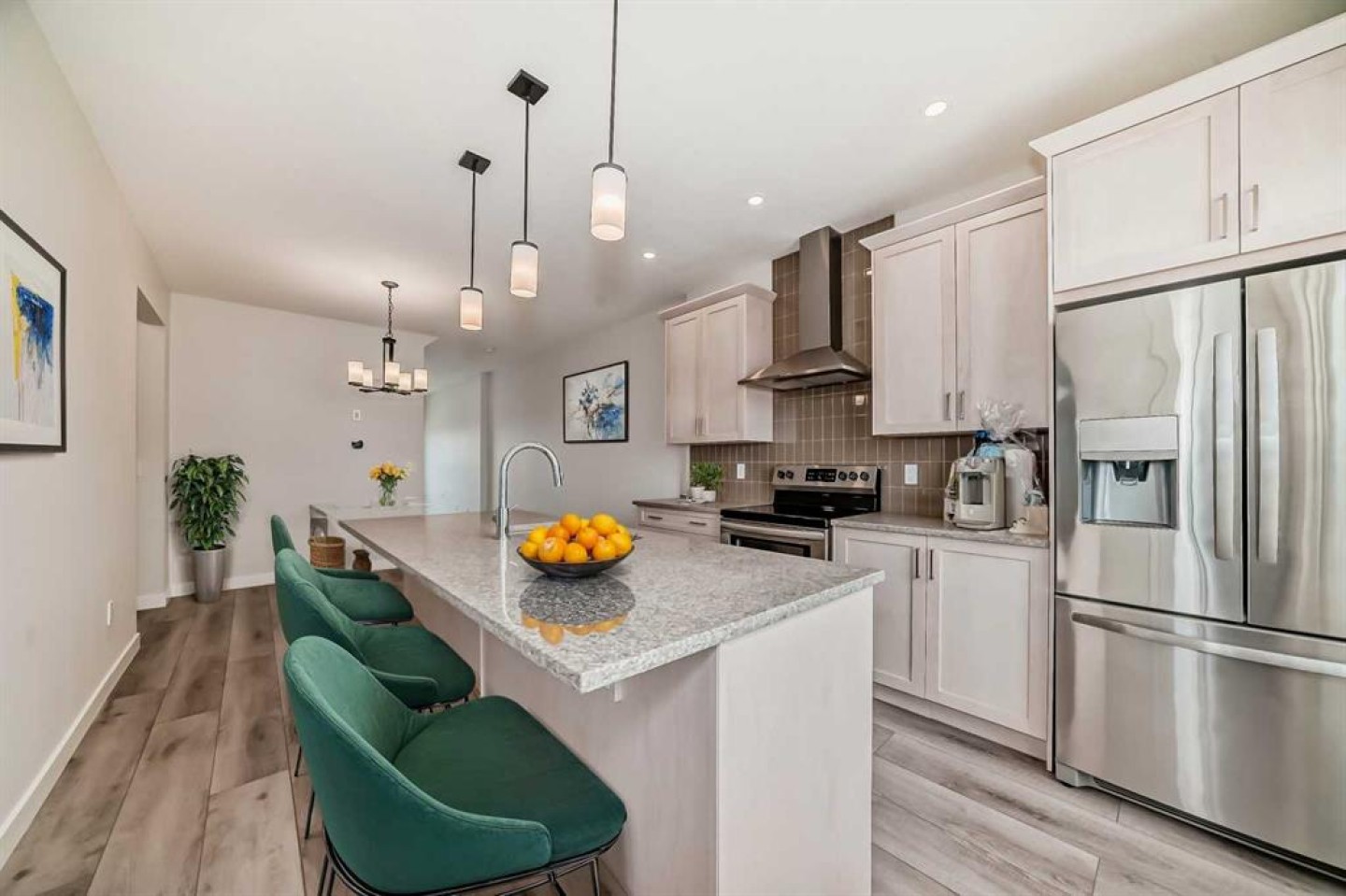 Offered, is a former Genesis show home - The "Alicia" model. The home is situated on an oversized corner lot, one of the largest available for this style of property, allowing for additional windows, enhanced natural light, and a clear advantage over interior units. Professional landscaping has already been completed, including trees, shrubs, and underground sprinklers, providing a seamless and low-maintenance transition for the new owner. Inside, you’ll appreciate the impressive modern layout and interior finishes/high-end features. Included, is a highly functional kitchen with a walk-in pantry including stainless steel appliances with the option for gas to both the kitchen and balcony, high end countertops, nine-foot ceilings, luxury vinyl plank flooring, and a conveniently located upper-floor laundry complete with washer and dryer. A unique and highly desirable feature of this home is the ground-level bedroom or flex space, making it ideal for a private home office, studio, or guest room—perfect for professionals seeking work-life balance without the daily commute. Additionally, the double attached rear garage features an upgraded carriage-style garage door and wall-mounted heaters, offering both comfort and added security A comprehensive list of upgrades is available for review, please ask your agent to view it. Alpine Park is a community that deserves a top spot on your home search journey. Located just off Stoney Trail in the SW quadrant of Calgary and near the new Taza shopping Development, this area reflects the bold and thoughtful planning vision of the developer, Dream. Contact your agent to book a private showing and explore this exceptional opportunity. Some photos have been virtually staged.