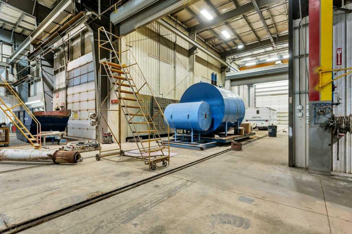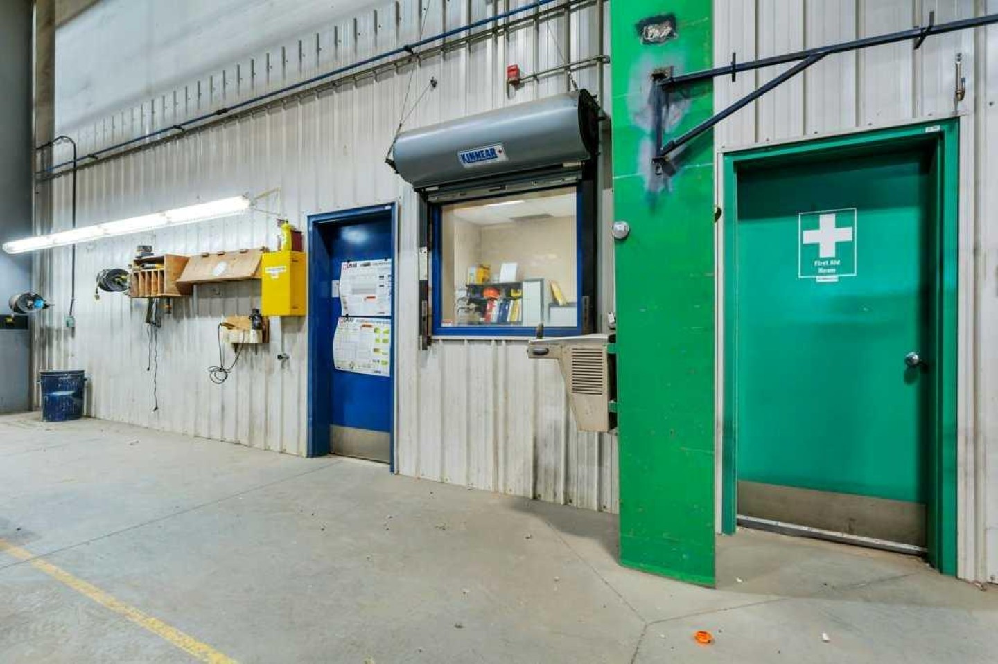 Now offering "For Lease" in the fast paced and quickly expanding area of Gasoline Alley next to the south end of Red Deer, AB. A well maintained and equipped 45,553 sqft office / shop / manufacturing facility on approximately 5 acres. 2 story multiple office area and an attached 29,200 plus sqft shop, detached cold storage building, sandblasting building, and storage tent. The shop consists of a 10 ton and 20 ton crane on the east and west ends of the shop that are capable of travelling to the exterior of the shop on a crane rail. (4) 2 ton cranes located throughout the interior of the shop. Fume extraction systems for welding, compressed air systems and floor drain / sump system. Large paint bay in the main shop with a steel partition door and a smaller detached heated enclosed paint bay outside. 22' wide x 18' high bay doors in the main shop with various other overhead doors. 120/240/480/600 volt availability. Centralized make up air unit. 6 zone radiant heaters. Lunch rooms, locker room areas, multiple washrooms. Lease rates are as follows: Office space $15.00 per sqft plus $4.50 per sqft additional rent. Shop space $12.00 per sqft plus $4.50 per sqft additional rent. Detached heated paint bay $12.00 per sqft plus $4.50 per sqft additonal rent. Cold storage building, sandblasting building and tent $5.00 per sqft.