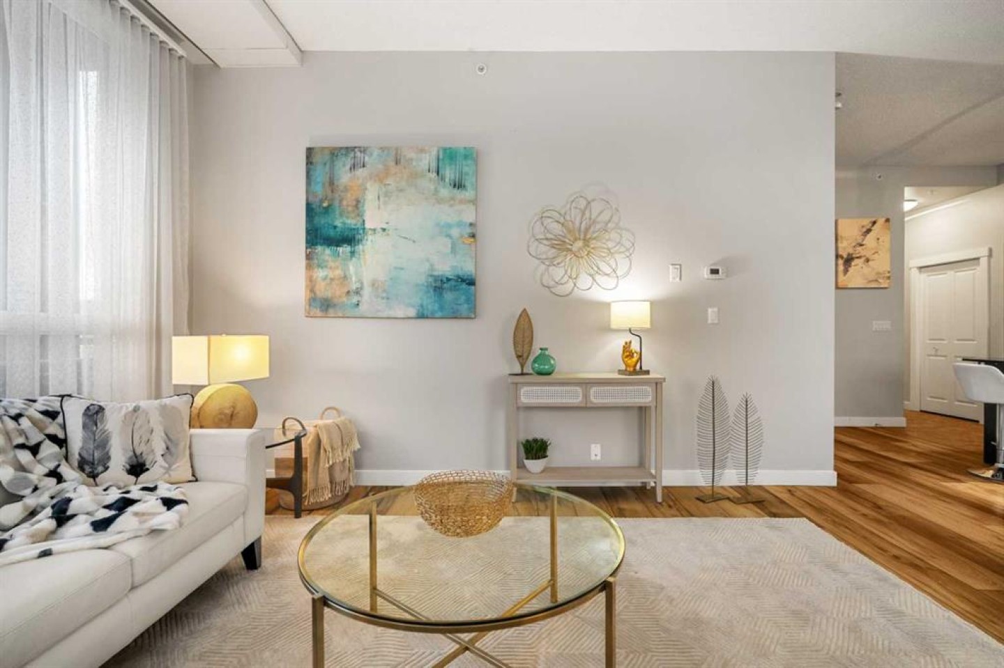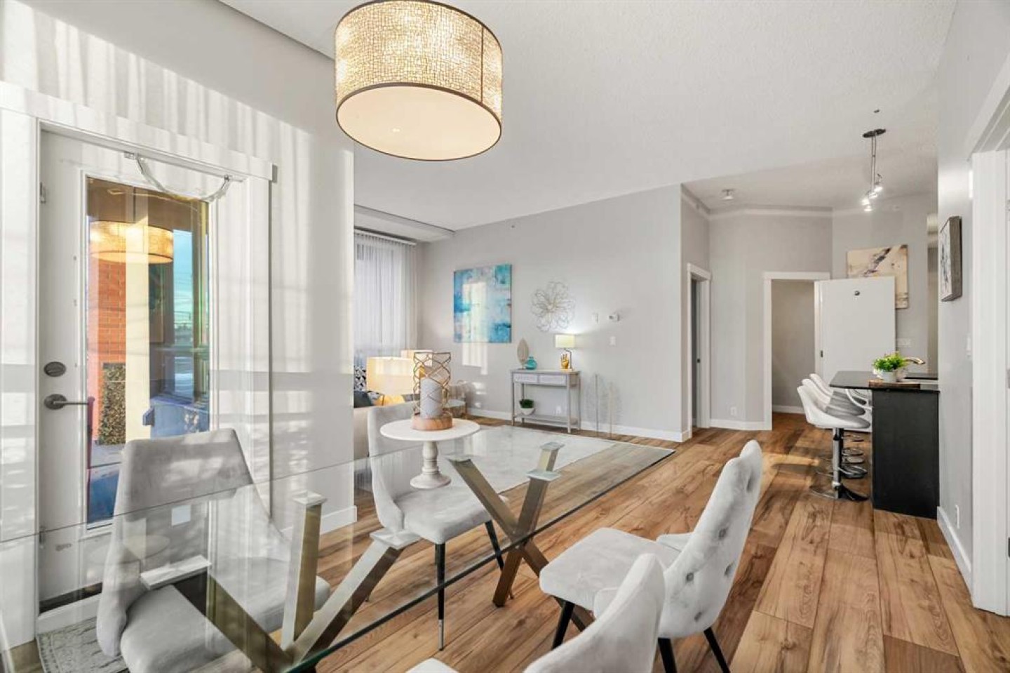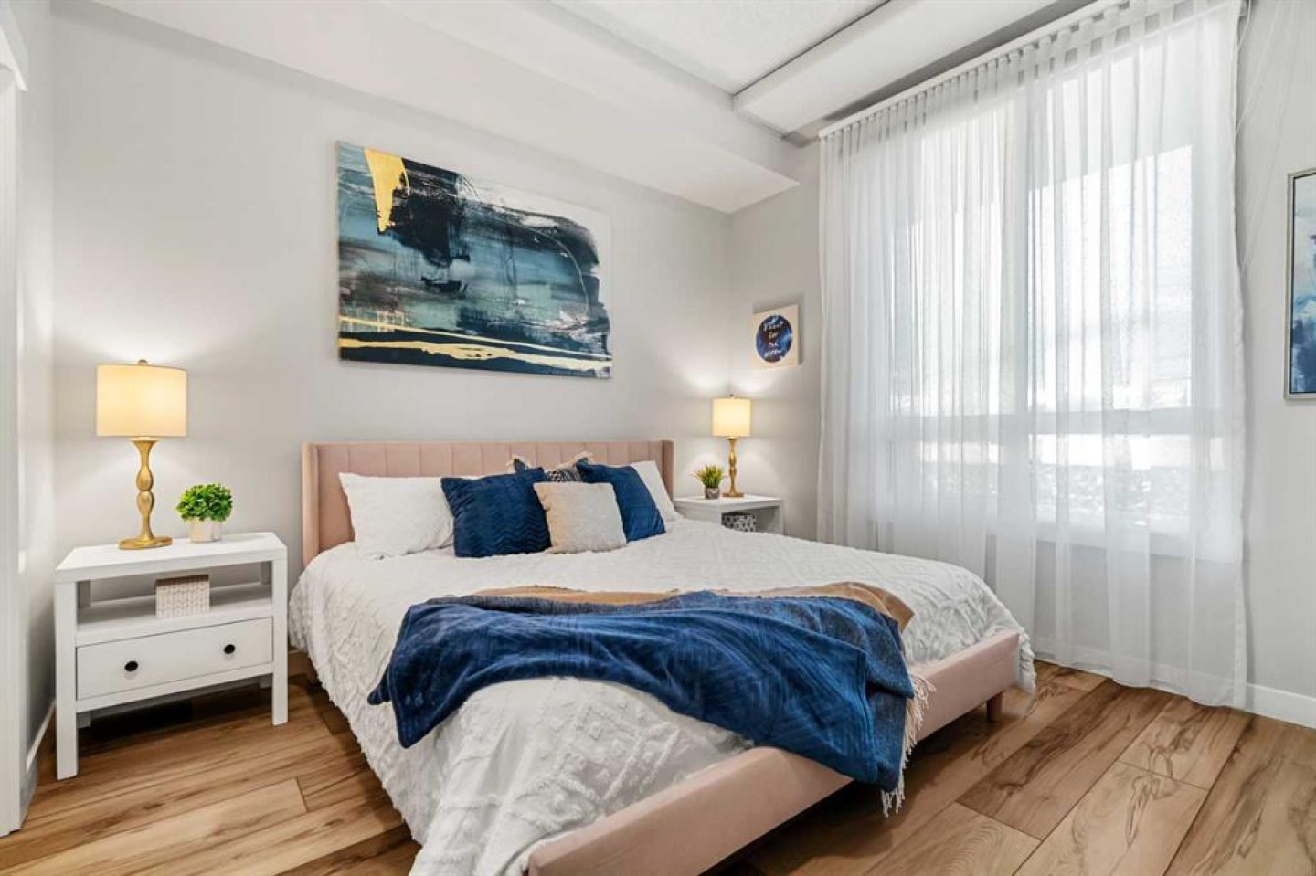 Welcome to this beautifully upgraded 2-bedroom, 2-bathroom , 2 parking stall - corner unit in the sought-after London at Heritage Station. Located on the second floor with 10-foot ceilings and a wrap-around balcony, this home offers a rare blend of space, light, and convenience and has over $50,000 in upgrades and renos— all in a concrete building with unbeatable access to amenities. This bright corner suite features windows facing north and west, allowing the home to be filled with natural light throughout the day. The open-concept layout is enhanced by wide-plank, high-end luxury vinyl plank flooring and stylish modern finishes.