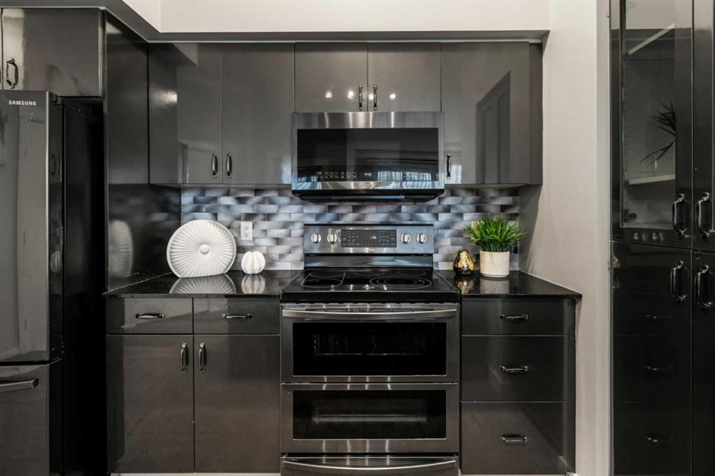 Dishwasher, Double Oven, Electric Stove, Garage Control(s), Microwave Hood Fan, Refrigerator, Tankless Water Heater, Washer/Dryer Stacked