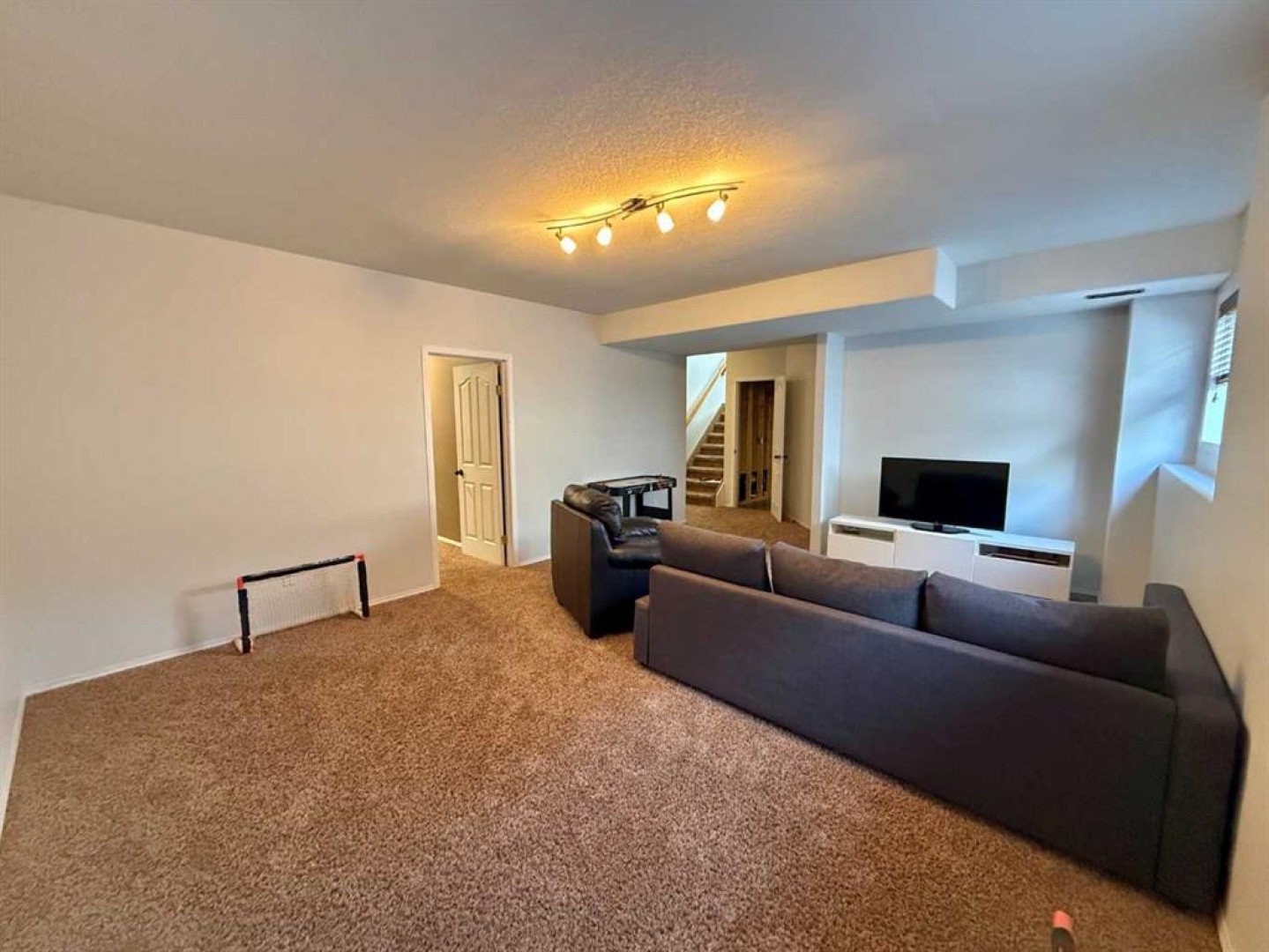 Downstairs, the fully developed basement provides a cozy second living room, two additional bedrooms, a full bathroom, and a dedicated laundry area, making it perfect for guests, teens, or a home office setup.