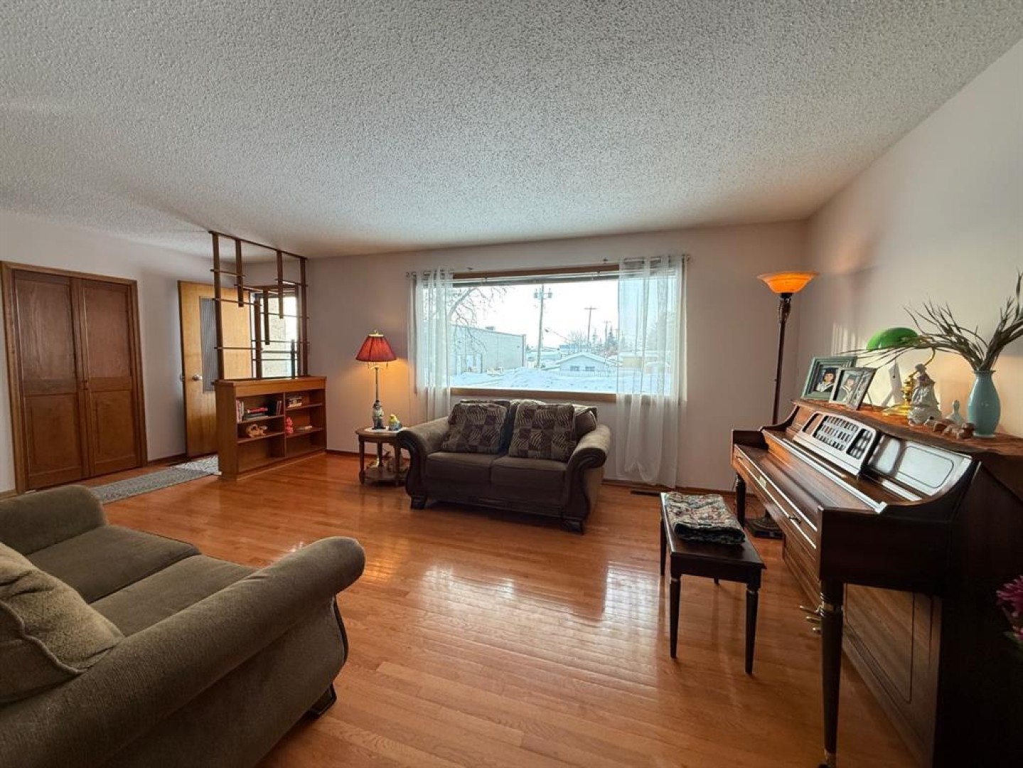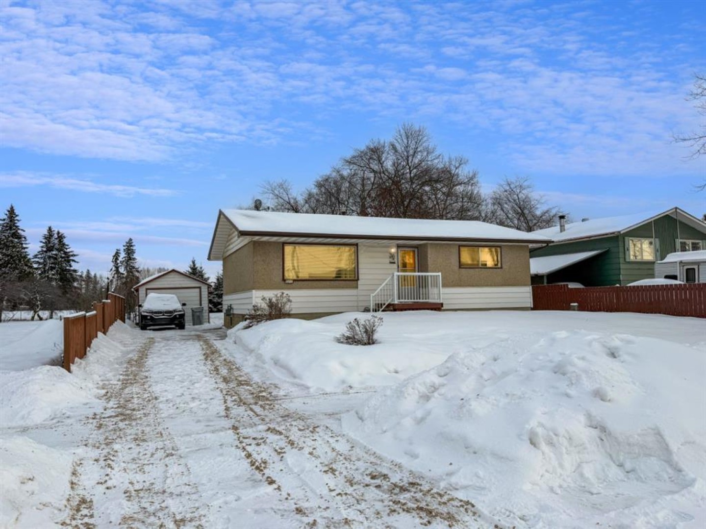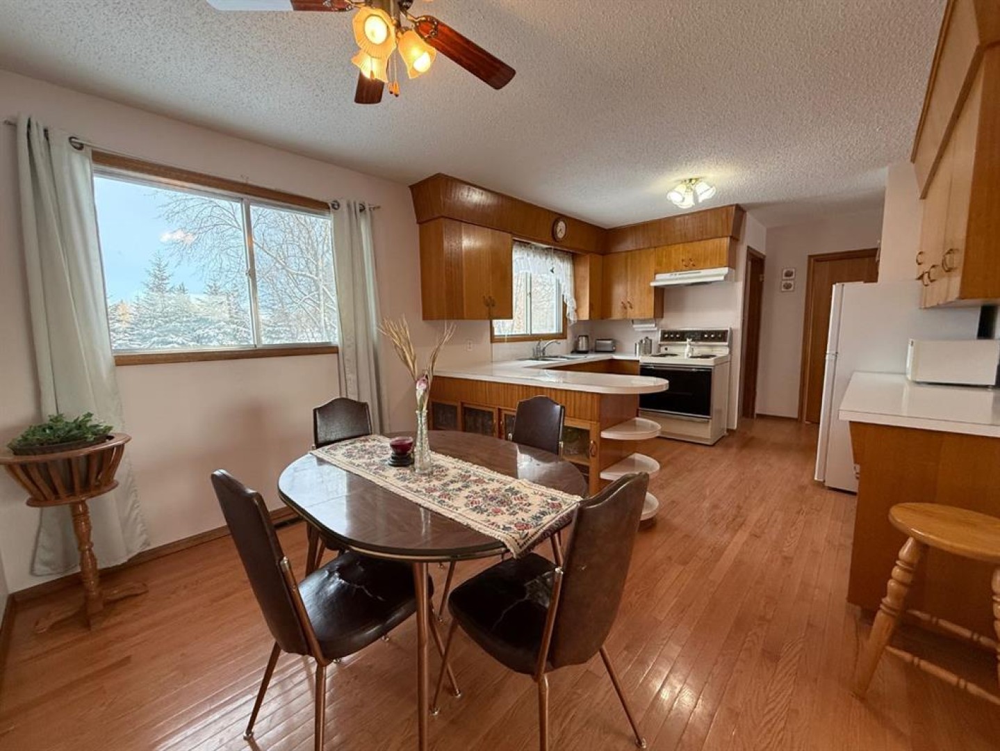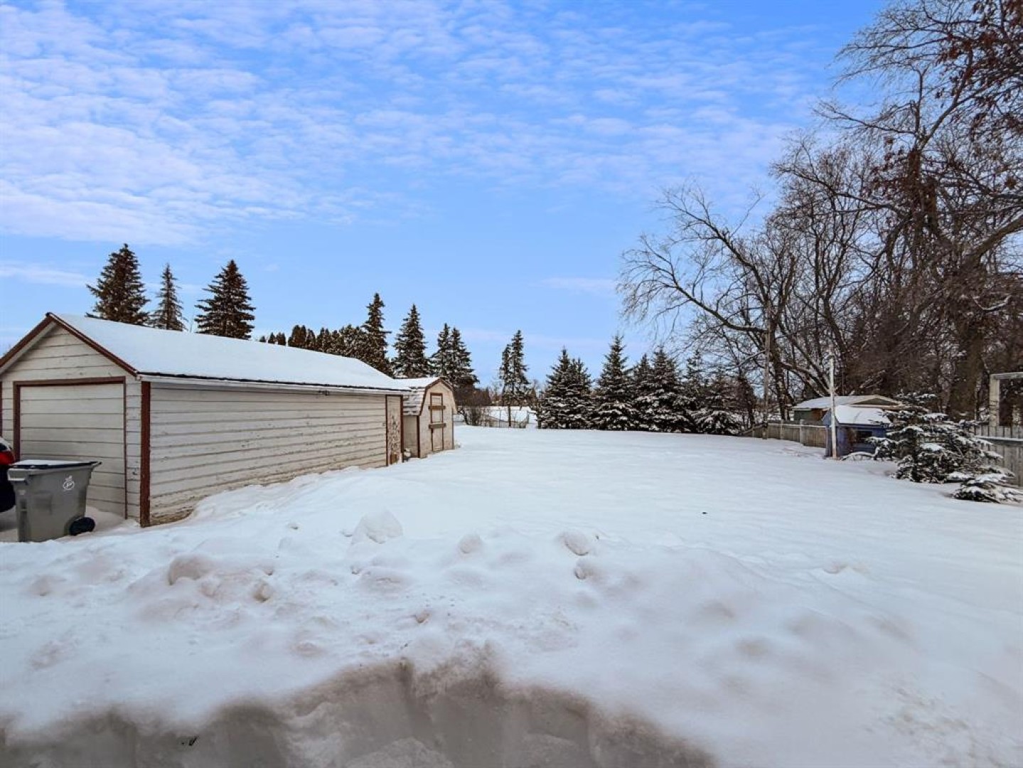 On a generous 0.26-acre lot with mature trees, this solid, well-maintained 960-square-foot bungalow presents a wonderful opportunity. The home features three bedrooms and two bathrooms, offering comfortable living space. Practicality is covered with a 12 x 22 single-car detached garage. Inside the home, you'll find a blend of classic character and care, including original wood cabinets with retro charm. Unique details, such as a built-in cutting board, glass fronts in the kitchen peninsula, and curved display shelves. Beautiful hardwood flooring extends throughout the living room and hallways, adding warmth and timeless appeal. Bonus of a cold room for pantry storage and an abundance of additional storage space throughout the home. Call, text, or email to book your viewing today.