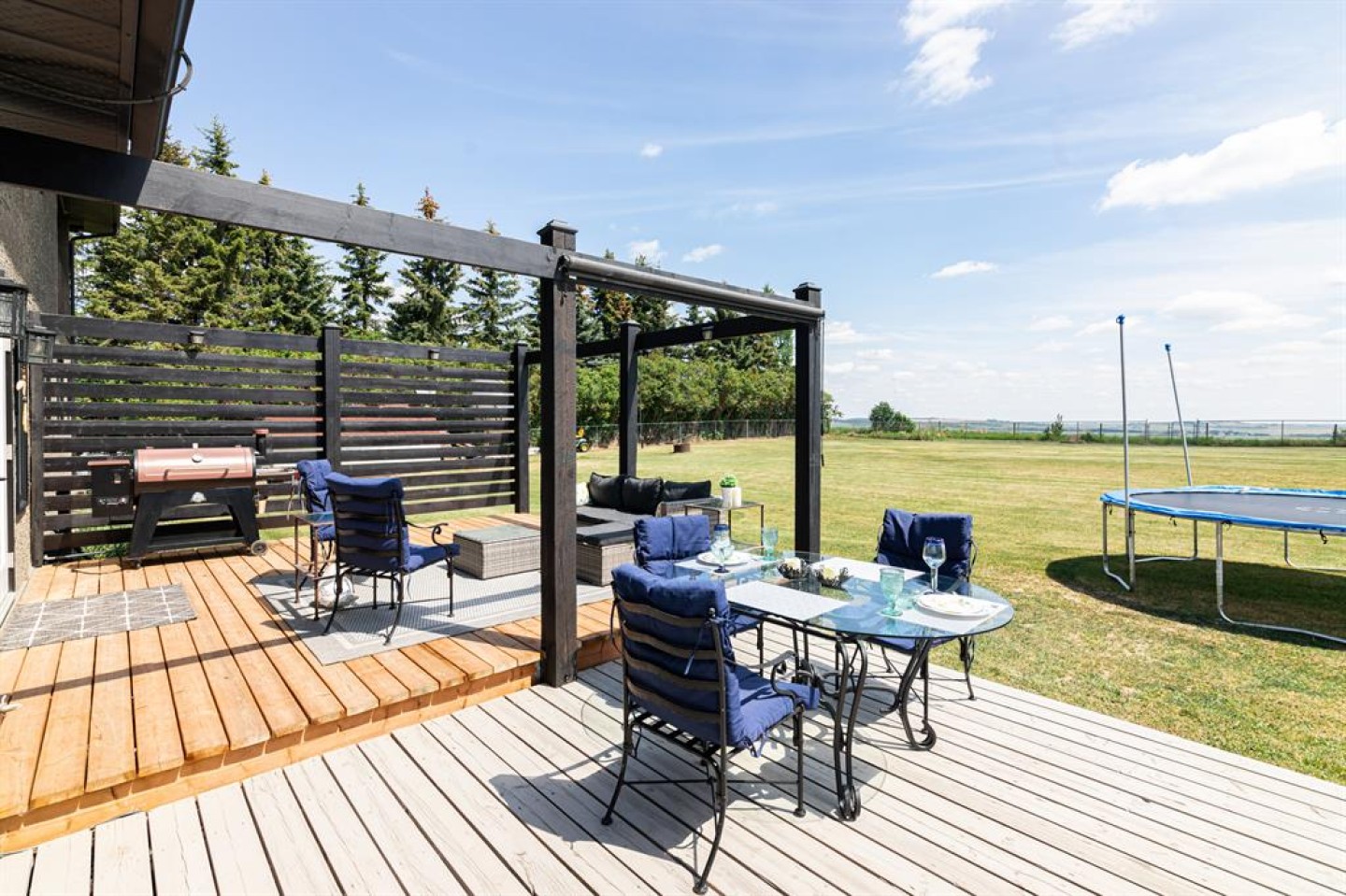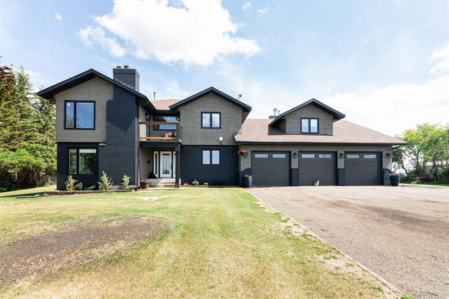 ~Exceptionally beautiful property inside and out~ BREATHTAKING VIEWS~ See the city lights twinkle as you look out from the west and enjoy the tranquility to the EAST!!! AMAZING TRANSFORMATION from old to new, with a complete professional renovation top to bottom! This home features: triple pane windows, new flooring, paint, bathrooms, kitchen, 220 in garage, new garage heater, appliances and much more! The front foyer boasts high ceilings and a beautiful, curved staircase! A sunken formal living room with wood burning fireplace and large windows located in the front off the entrance, flows to the spacious dining that also features a large window, built in modern cabinets and a large storage/panty tucked behind a beautiful barn door. The kitchen features expansive quartz countertops, a 4x8 island, STUNNING WHITE CABINTRY, reverse osmosis, 5 burner gas range, a walk-in pantry with coffee station and incredible MODERN tiled backsplash! The large QUARTZ peninsula seats 4 and is conveniently located adjacent to the double patio doors that walk out onto a large private patio and east back yard. The family room off the dining boasts high ceilings, a beautiful brick feature wall and a gas fireplace; a large comfortable living space for family gatherings and movie nights. THE HOT TUB ROOM is truly a remarkable place ALL YEAR ROUND to enjoy your mornings or evenings, and is completely set up for entertaining friends, drinks and BBQ'S. Main floor also features MAIN FLOOR LAUNDRY ROOM located off the garage entrance, and a spacious office with BUILT IN CABINETS! THE GORGEOUS CURVED STAIRCASE leads to the second floor where you'll find an illegal SUITE above the garage with a 4-piece bathroom, 2 bedrooms, a full-size living room, kitchen area, and separate entrance. The PRIMARY BEDROOM also located on the upper floor has a HOTEL FEEL, sunken and behind French Doors featuring a beautiful wood burning fireplace, door to the private balcony and views to the west overlooking the CITY! AMAZING AND GENEROUS size 5 piece en-suite has a large sunken spa like tub, water closet, separate shower, expansive counters with dual sinks and a door to the east PRIVATE BALCONY. There is enormous closet space for him and her. No shortage of beautiful upgrades throughout, lighting, flooring, air conditioning and more. The basement has 2 rooms close to completion, very little left to do, roughed in for a fourth bathroom, one room is used as a gym, there is a large storage room and full access to the hot tub above, for any maintenance. All new plumbing, and electrical, furnaces, sump pump, new garage heater, making this home an attractive purchase with peace of mind. Enjoy the tranquility acreage living has to offer, minutes to RED DEER, nothing left to do but enjoy your new beautiful home.