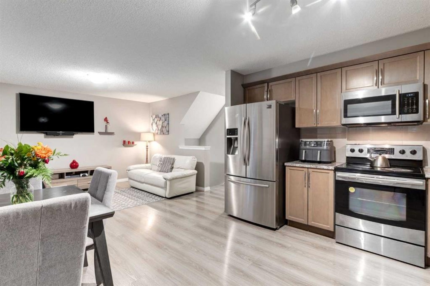 This IMMACULATE, AIR-CONDITIONED Detached 2 Storey HOME in the highly DESIRABLE South Windsong Community has 1,634 Sq Ft of BEAUTIFULLY Developed living space that offers the perfect blend of COMFORT + PRACTICALITY, w/an ATTACHED Single Garage, 3 Bedrooms, 3 ½ Bathrooms, all on a 3,245 Sq Ft LOT. We start w/GREAT CURB Appeal incl/Low-Maintenance Landscaping + a CHARMING Covered Front Porch that INVITES you to sit outside in a chair ENJOYING your morning coffee while the sun rises. As you enter the Foyer, you’re greeted w/Neutral MODERN Laminate flooring + NEUTRAL Walls throughout, w/direct access to the GARAGE on the left + a Coat Closet across for added CONVENIENCE. Past the stairs, the ‘Heart of the Home’ is a MODERN Kitchen w/SS Appliances incl/a Large Refrigerator, Electric Stove, Dishwasher + Microwave, Warm-toned Cabinetry w/AMPLE STORAGE + a Tiled Backsplash - Designed for both STYLE + FUNCTION. Sliding Patio doors CONNECTS you to your SOUTH-FACING Backyard. The Dining AREA fits a table to gather around for those meals w/FAMILY, + FRIENDS sharing LAUGHTER, + making MEMORIES. The LIVING ROOM is GREAT for RELAXING at the end of the day, whether Reading a Book; watching your favourite TV Show or taking a nap when needed. The Upper Level has Carpet throughout, the Primary Bedroom w/Windows filling the space w/Sunlight, + providing a RESTFUL space for a PEACEFUL RETREAT. It has a 3 pc EN-SUITE incl/a FULLY Tiled Standing Shower + a WALK-IN Closet offering AMPLE space for all your wardrobe needs. There are 2 GOOD-SIZED 2nd + 3rd Bedrooms, perfect for family, an office area or GUESTS. Completing the level is a 4 pc Bathroom w/SOAKER Tub for those moments to UNWIND after a long day. Heading to the lower level, a PRIVATE 2 pc BATHROOM sits below half the flight of stairs to the basement. The Fully Developed Basement has a Crawl Space to the left, PERFECT for STORING Seasonal Decor + MORE! Enjoy the SPACIOUS Recreation Room, whether you curl up on the couch, read a book, or enjoy Movie or Game Nights; this space is built to build MEMORIES together. There is plenty of room for an OFFICE SPACE, HOBBY AREA or HOME GYM. The Laundry/Utility/Storage room area provides plenty of space for all your storage needs. This SOUTH-FACING Backyard, extends your living space outdoors for even more ENJOYMENT. Whether you're seeking a QUIET ESCAPE or a LIVELY gathering place on the Deck for a BBQ, this Backyard works for spending time w/Children and/or Pets. South Windsong in Airdrie is a VIBRANT, MODERN community perfect for FAMILIES + PROFESSIONALS alike!! ENJOY well-maintained parks, scenic walking + biking paths, + PLENTY of green space for outdoor living. EASY ACCESS to major routes like Yankee Valley Boulevard + the QEII for commuting, + nearby Shopping, Restaurants, Schools, and services. South Windsong offers EXCELLENT value, convenience + a strong sense of community that makes it one of Airdrie’s most DESIRABLE neighbourhoods. Book TODAY for a private viewing!!