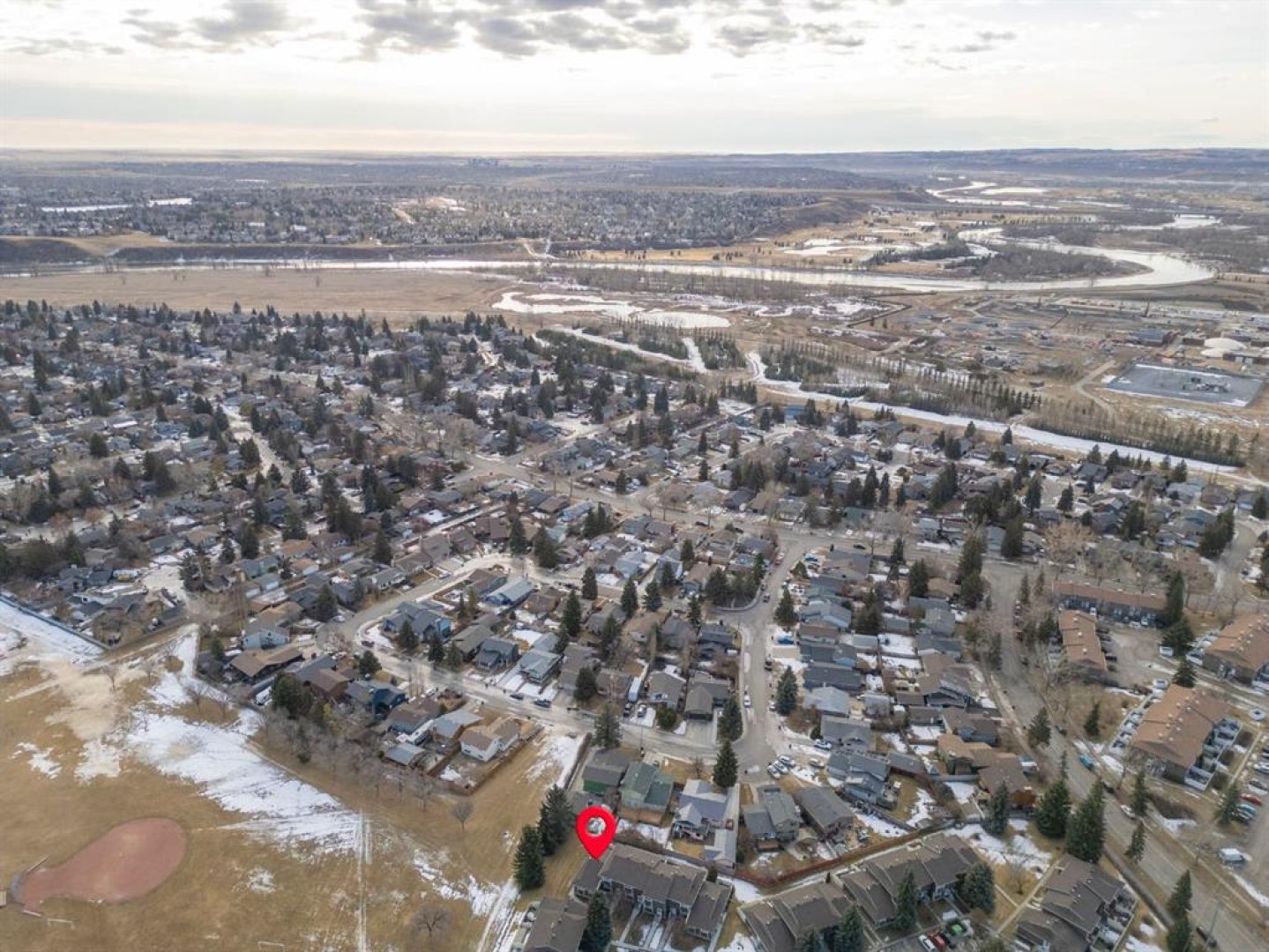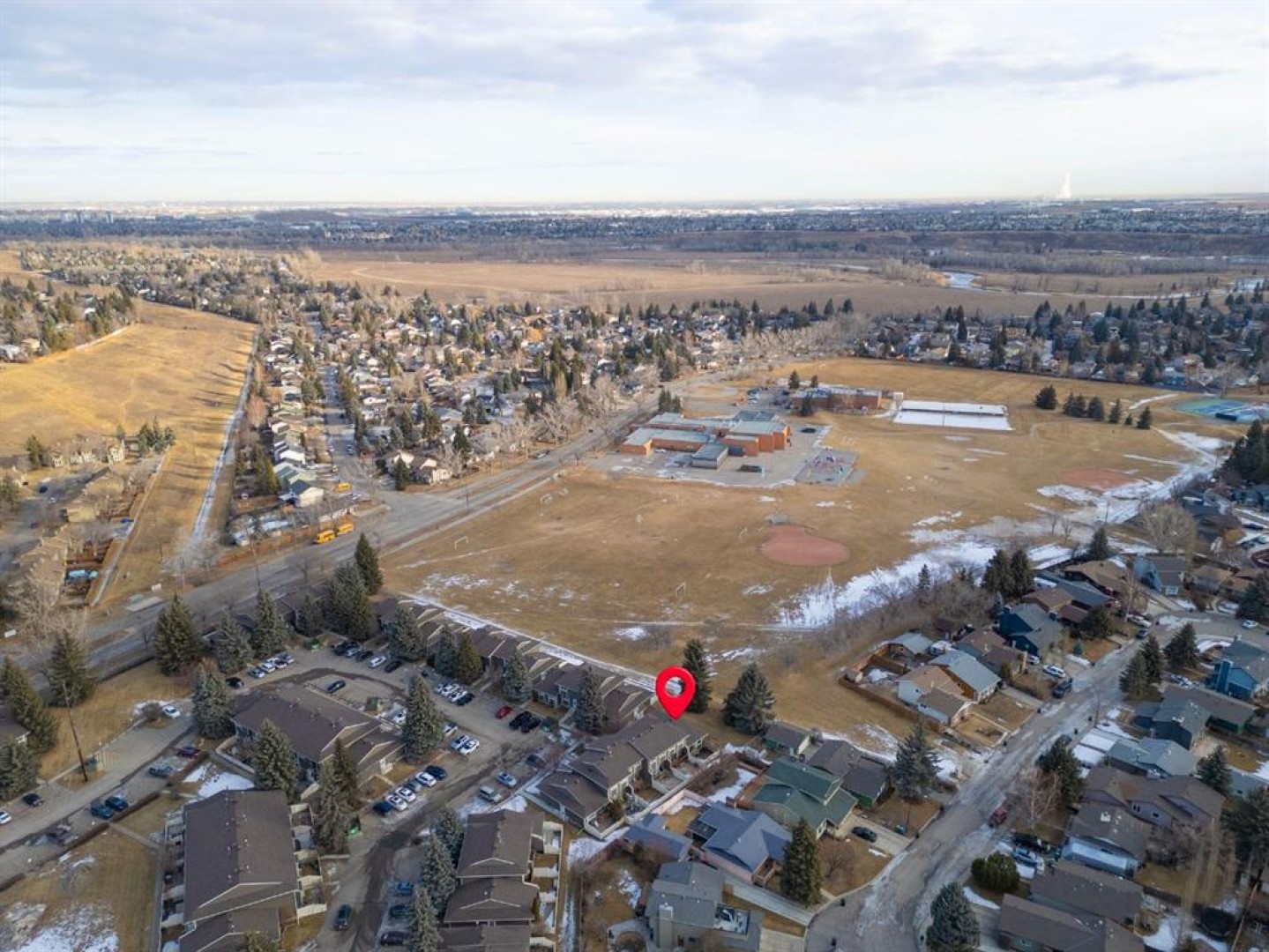 Opportunity knocks with this bungalow style townhome, a strong fit for investors or a handyman ready to add value. The main level offers a spacious one bedroom layout with the option to reconfigure back to two bedrooms, based on the original floor plan. A fully finished basement adds extra living space and includes an additional bedroom. Major mechanical updates include a newer hot water tank and furnace, helping reduce near term capital expenses. The home faces a school field, offering open views and added privacy. This private end unit features a fenced yard, ideal for tenants or future resale appeal. The property includes a four piece bathroom and two assigned parking stalls. Original finishes throughout provide a blank slate for renovation and customization. A solid value with upside for the right buyer. This complex is ideally located just minutes from Fish Creek Park, the Bow River, and Sikome Lake, with access to scenic pathways, parks and natural green space to explore.