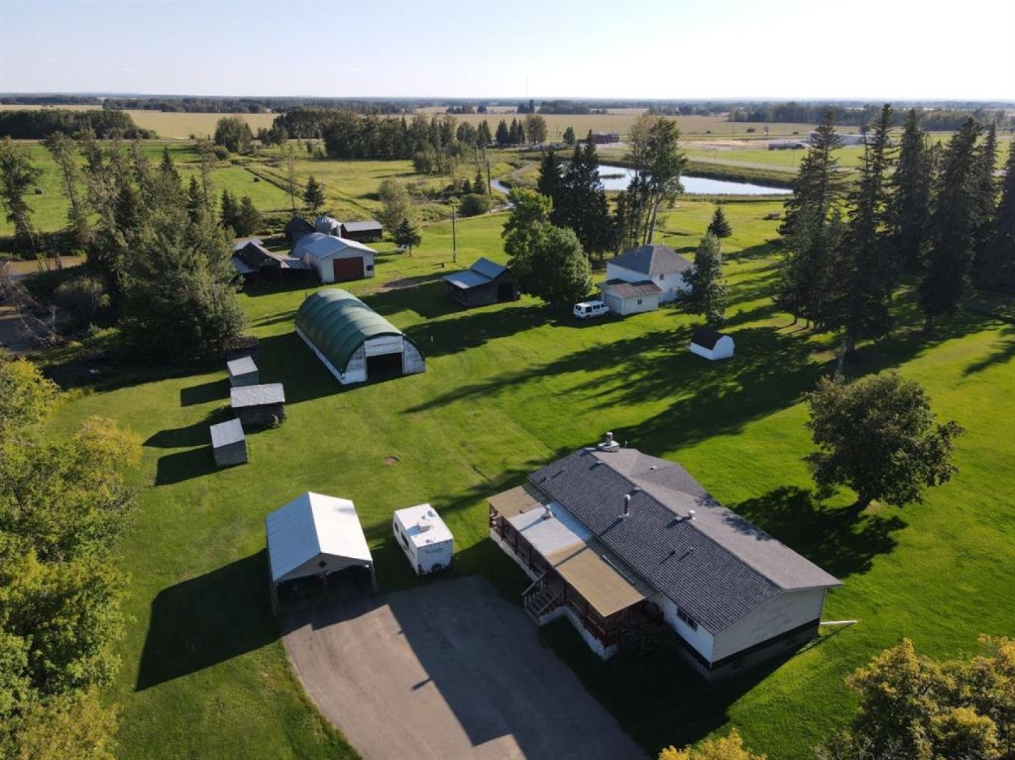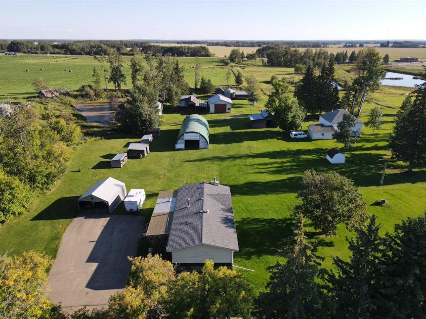 On the East border of High Prairie, this versatile property presents a prime opportunity with a substantial land base, a comfortable home, and exceptional outbuilding space. It consists of two distinct parcels: a 124-acre parcel within the M.D. of Big Lakes and a 16.25-acre parcel within the Town of High Prairie, offering both agricultural potential and residential convenience. The land, currently being hayed, features fertile Gleyed Dark Gray Chernozem soil, known for its high organic matter and productivity in transitional parkland zones. The improvements include a 1,514 square foot, three-bedroom, two-bathroom home built in 1978, featuring a full, unfinished basement. A 28' x 30' shop, a 30' x 70' Quonset, and multiple additional outbuildings. Currently zoned for both Agricultural and Residential use, this unique holding is ideal for a family seeking space, an entrepreneur/investor, or an agricultural operation. Call, email, or text today to book your viewing or find out more.